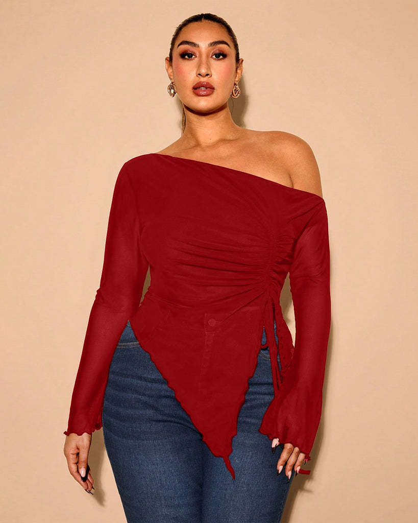Mesh Drawstring Side Top Curve & Plus in Dark Red