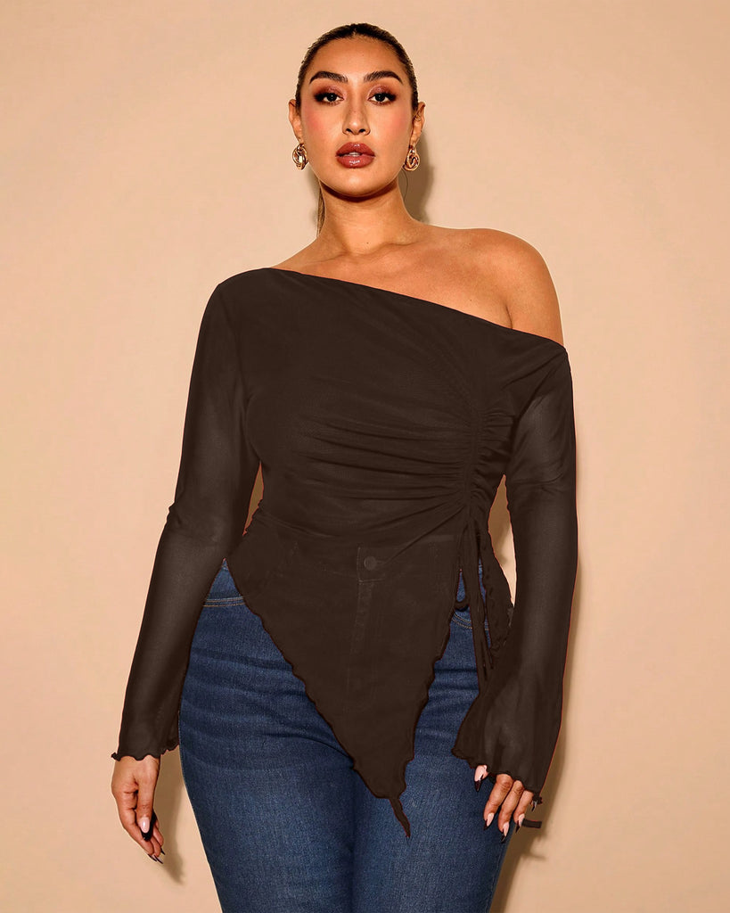 Mesh Drawstring Side Top Curve & Plus in Coco Brown