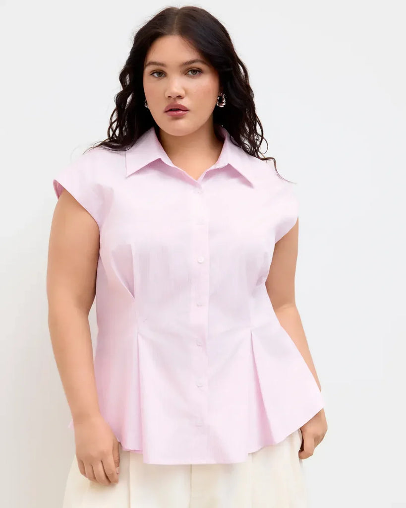 Collared Short Sleeve Button Down Shirt Curve & Plus
