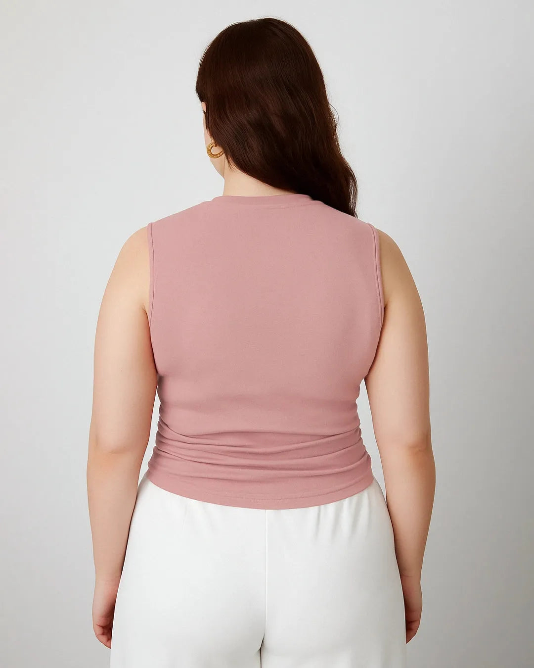 Introducing our Sleeveless Ruched Pink Crop Top Curve & Plus. This pink crop top is made for movement, shape, and comfort. With subtle side ruching and a smooth sleeveless silhouette, it hugs in all the right spots while keeping things minimal and versatile.