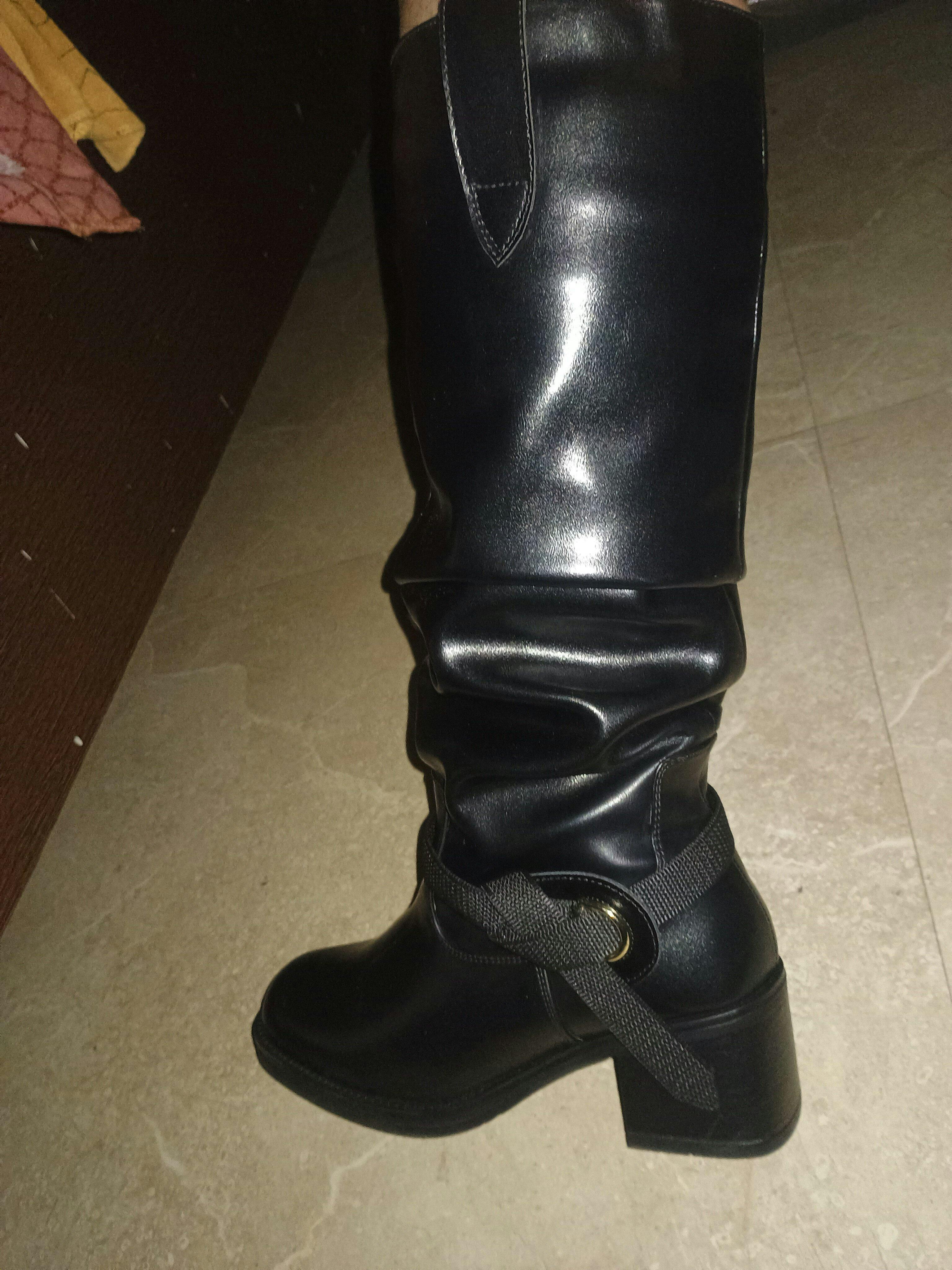 Black Knee-High Boots With Buckle And Heel bring bold structure with a sleek, statement ready silhouette. Designed in a smooth black finish with soft slouch detailing, these black knee high boots feel confident, edgy, and fashion forward. The side buckle adds a subtle statement touch, while the sturdy block heel gives height without losing balance. With a clean rounded toe and strong build, these black knee high boots are made to stand out while staying wearable. The tall profile instantly elevates any outfit with minimal effort.