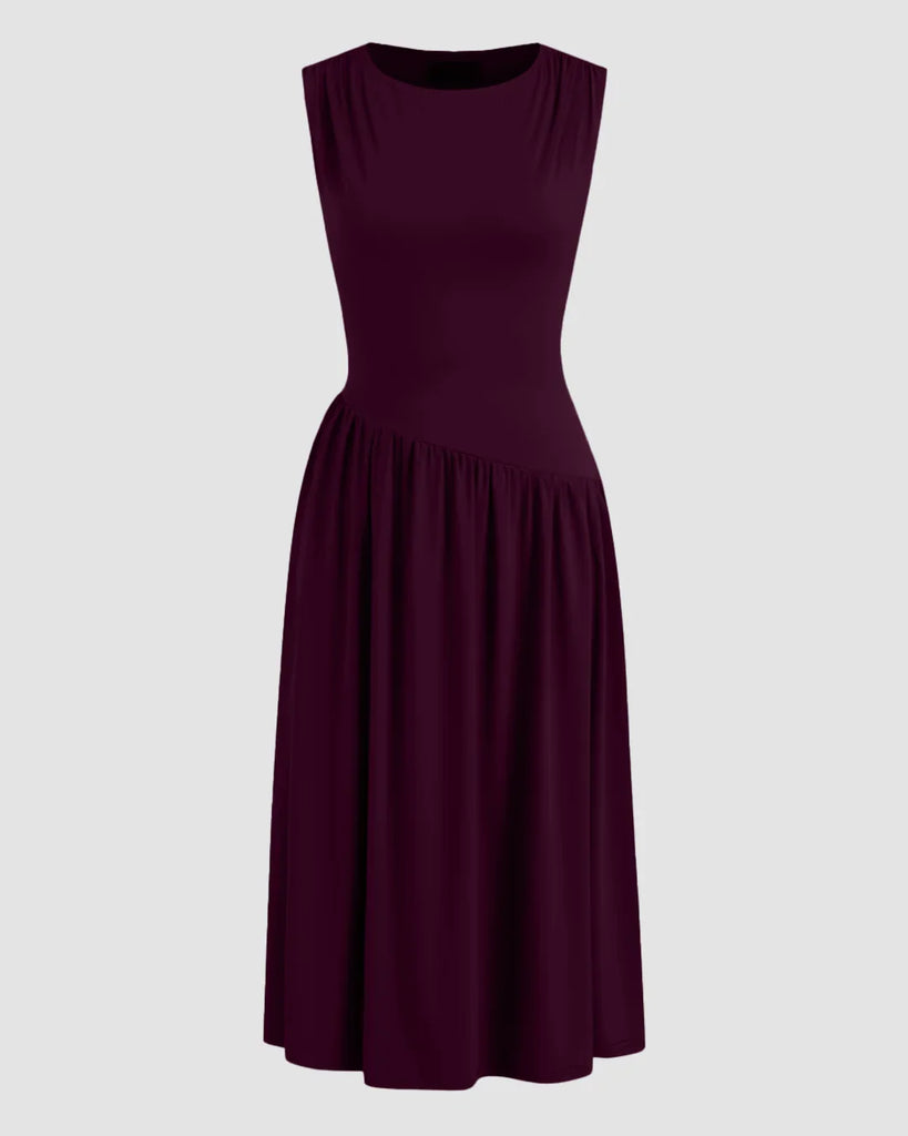 Solid Ruched Sleeveless Ribbed Knit Dress In Maroon Curve & Plus