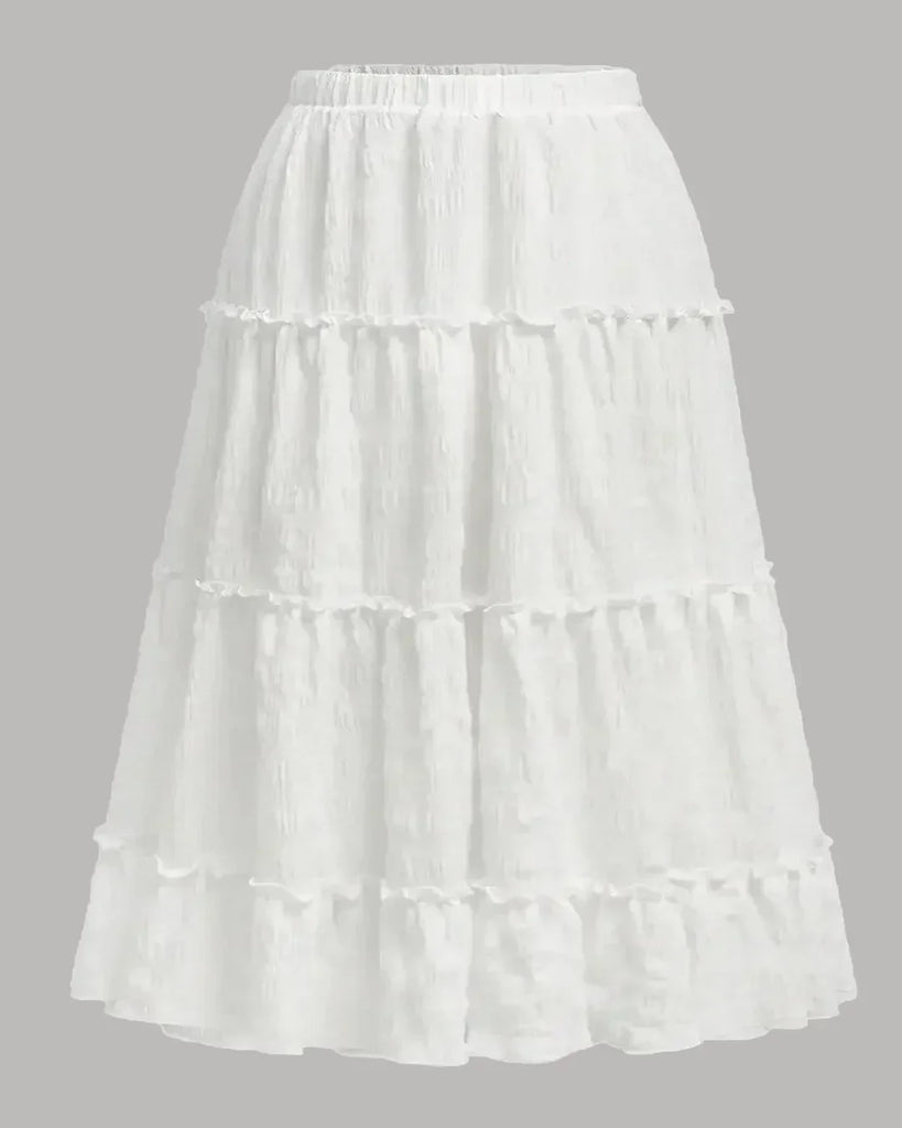 Retro Casual High Waist Solid Long Ankle Pleated Skirt in White Curve & Plus