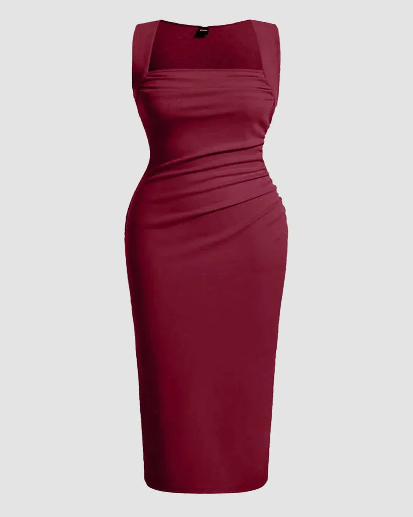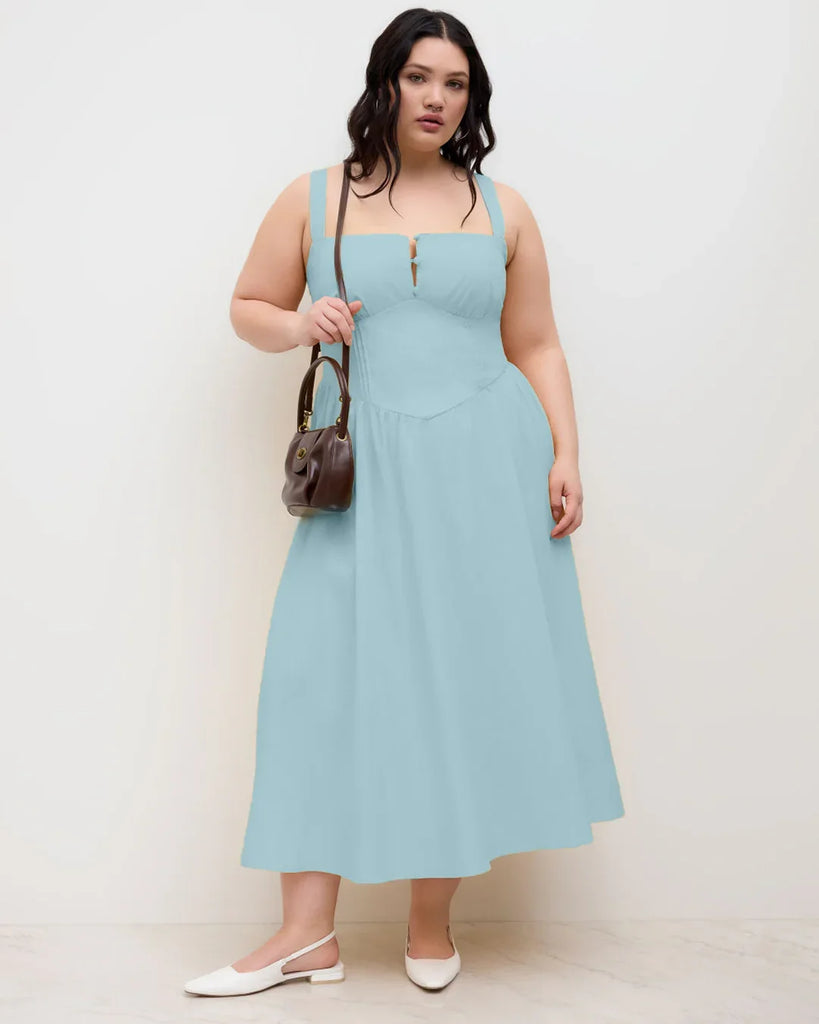 Square Neck Bow Detail Sleeveless Midi Dress Curve & Plus