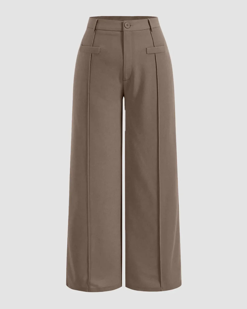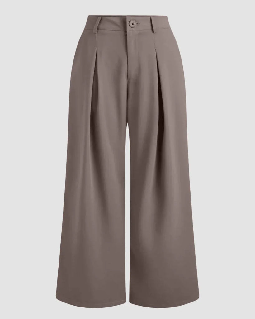 High-Waist Pleated Wide-Leg Trousers in Cappuccino Curve & Plus