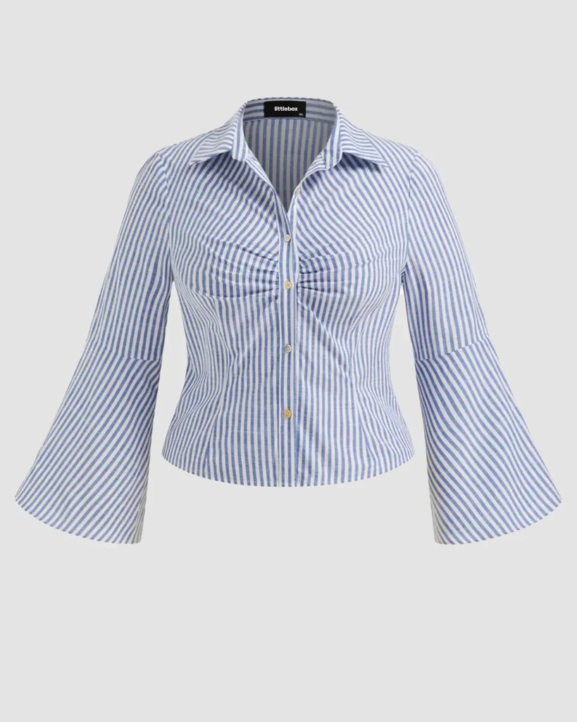 Blue Striped Flared Full Sleeve Shirt Curve & Plus