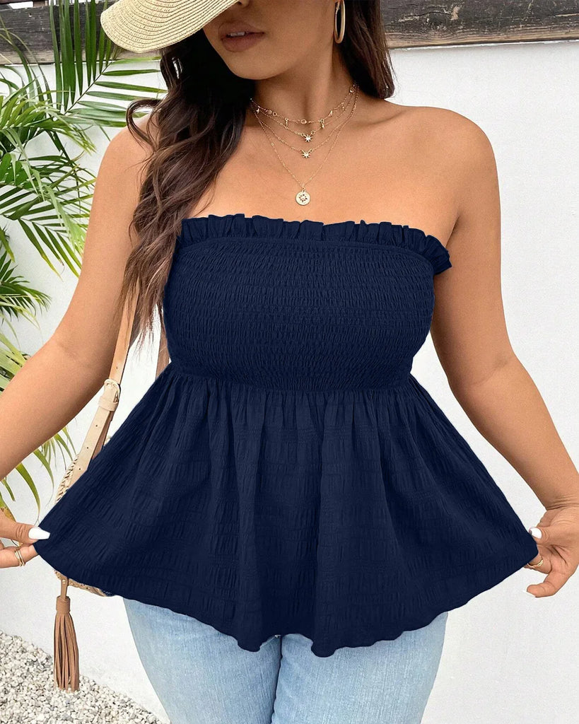 Navy Blue Smocked Peplum Tube Top Curve & Plus