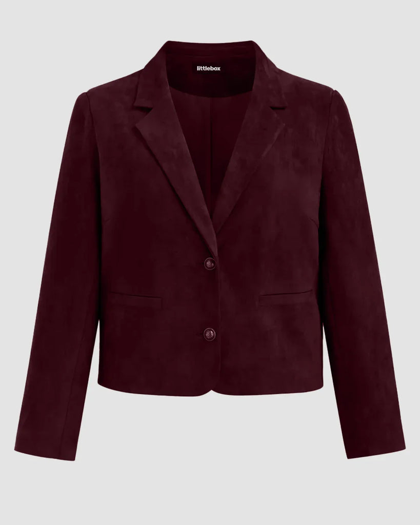 Maroon Collared Buttoned Long Sleeve Jacket Curve & Plus