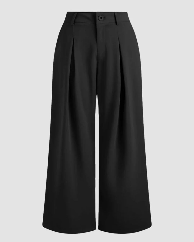 High-Waist Pleated Wide-Leg Trousers in Black Curve & Plus