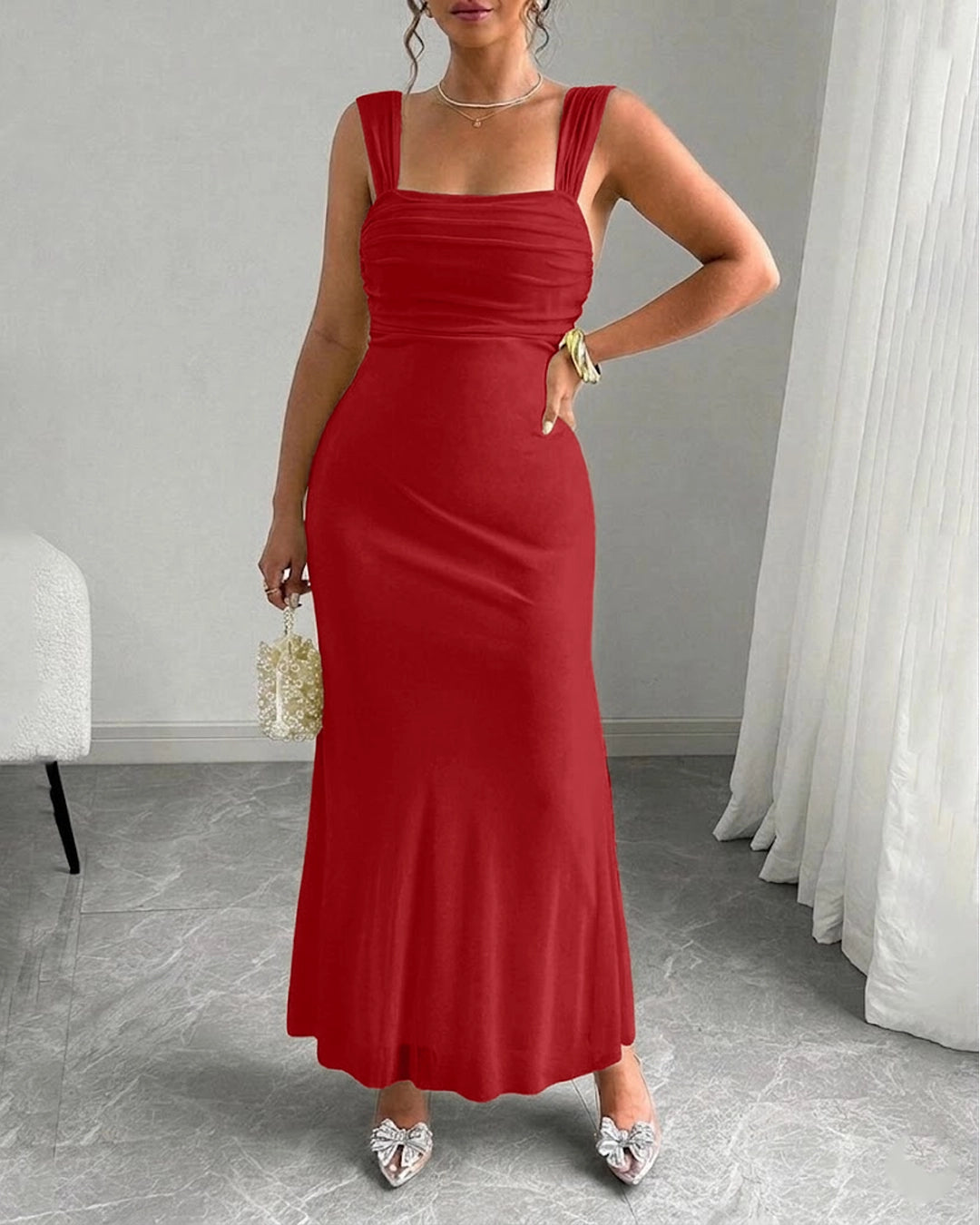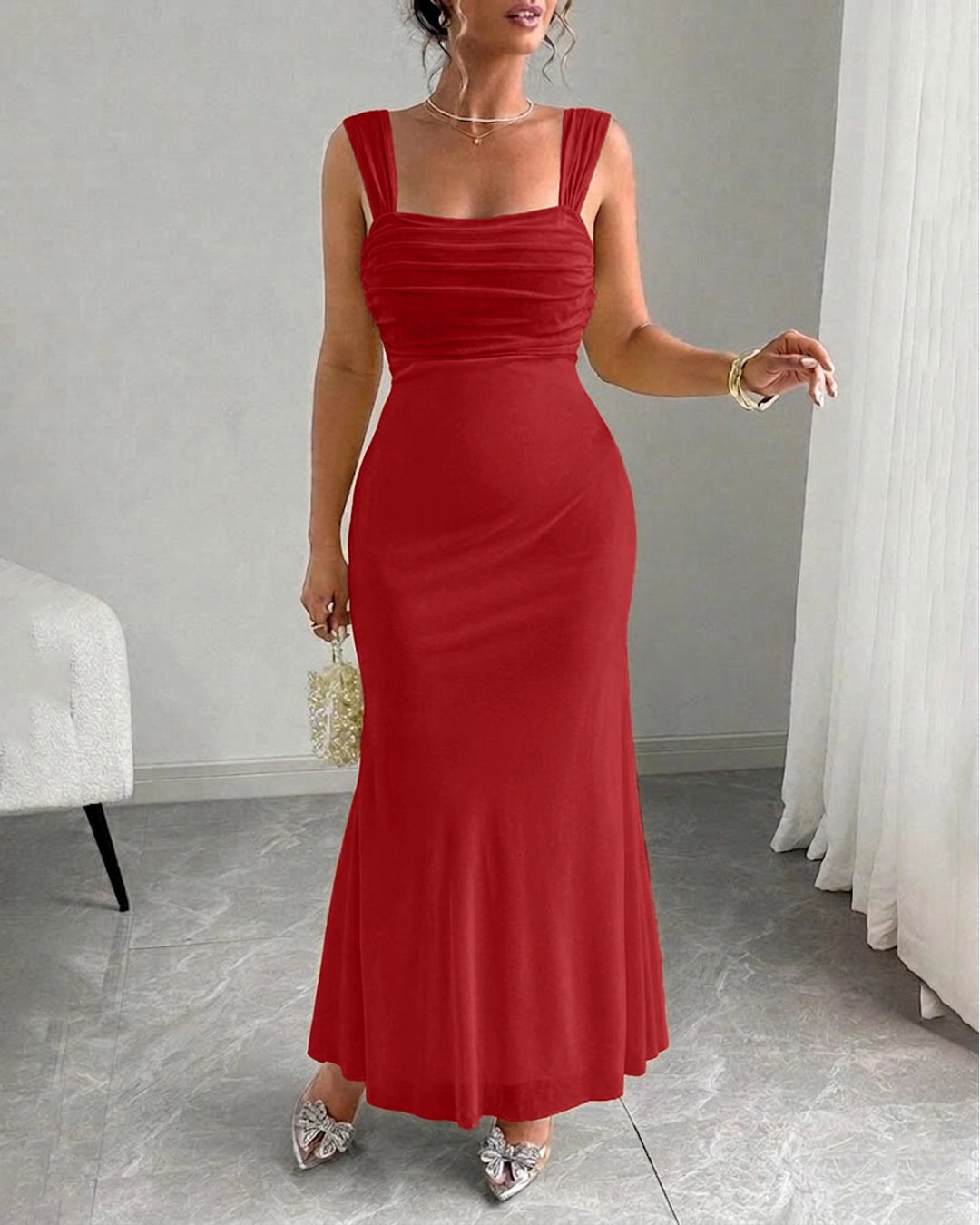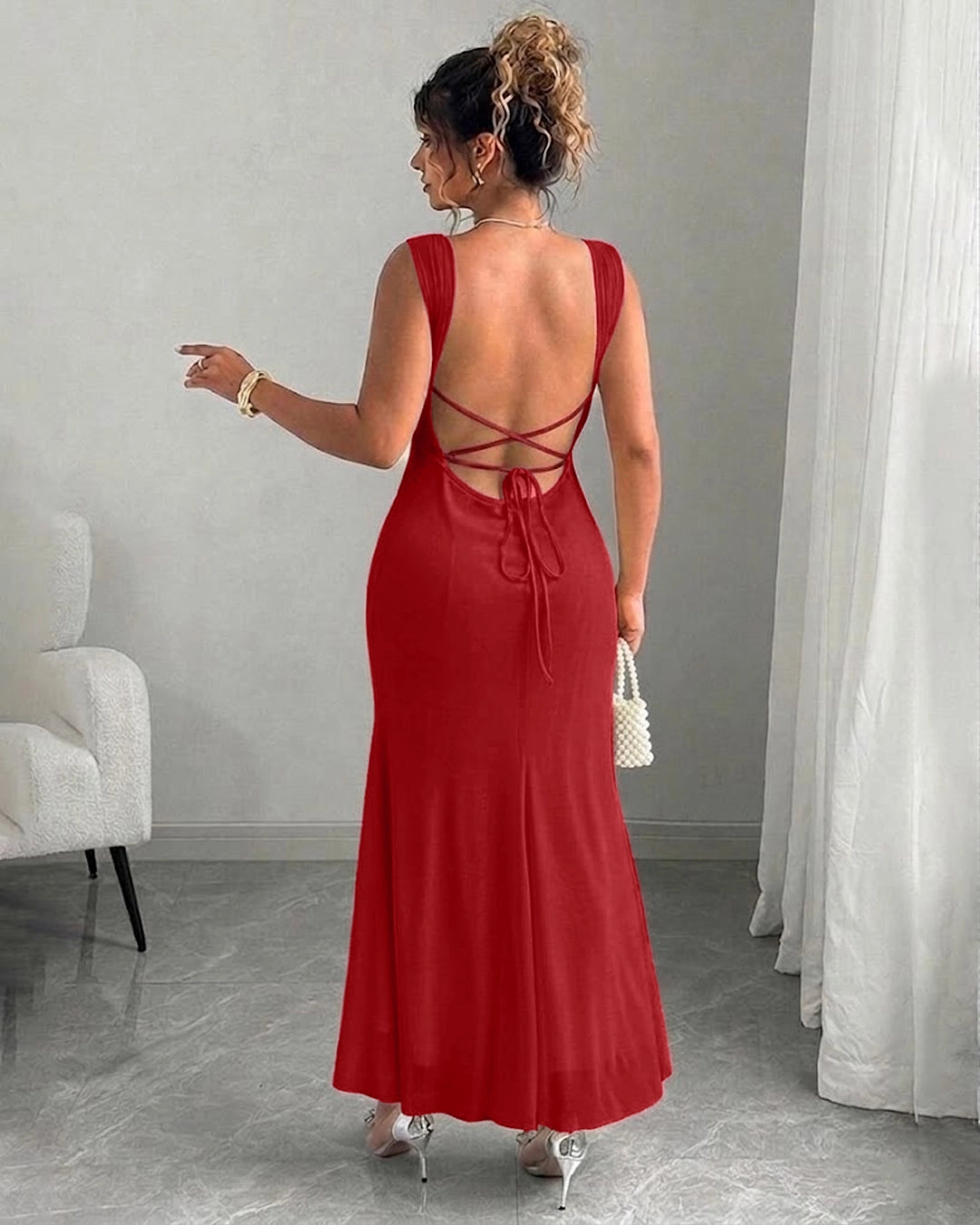 This Strap Ruched Backless Knot Tie Dress Curve & Plus in Dark Red brings a sleek, sculpted vibe with its flattering silhouette and soft detailing. Designed with wide straps and ruched detailing across the bodice, it enhances your shape while keeping the look smooth and elegant. The backless design with a knot tie adds a subtle statement, while the flowy lower half creates a balanced, graceful finish. Made from polyester and spandex, it feels soft with a comfortable stretch that fits beautifully. This ruched backless knot tie dress in dark red keeps your look bold and effortlessly stylish.