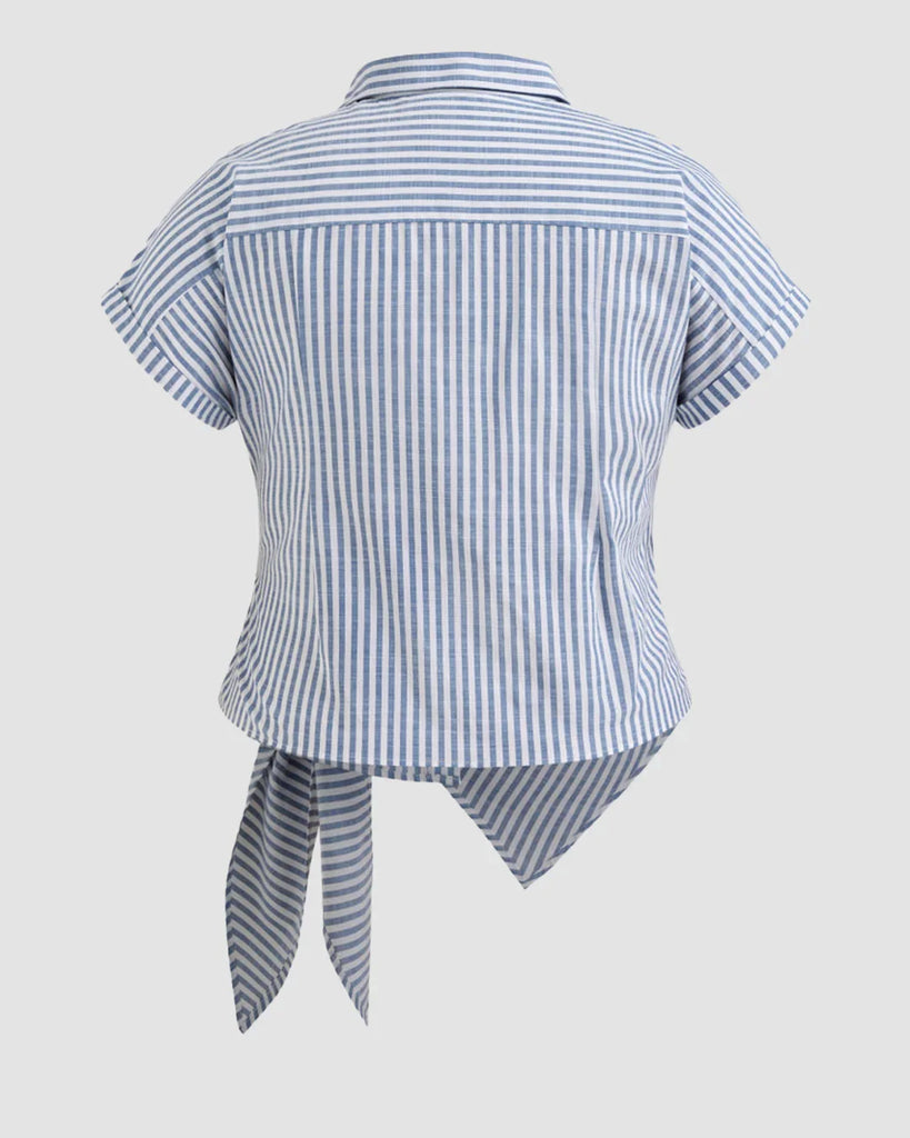 Stripe Knotted Short Sleeve Shirt Curve & Plus