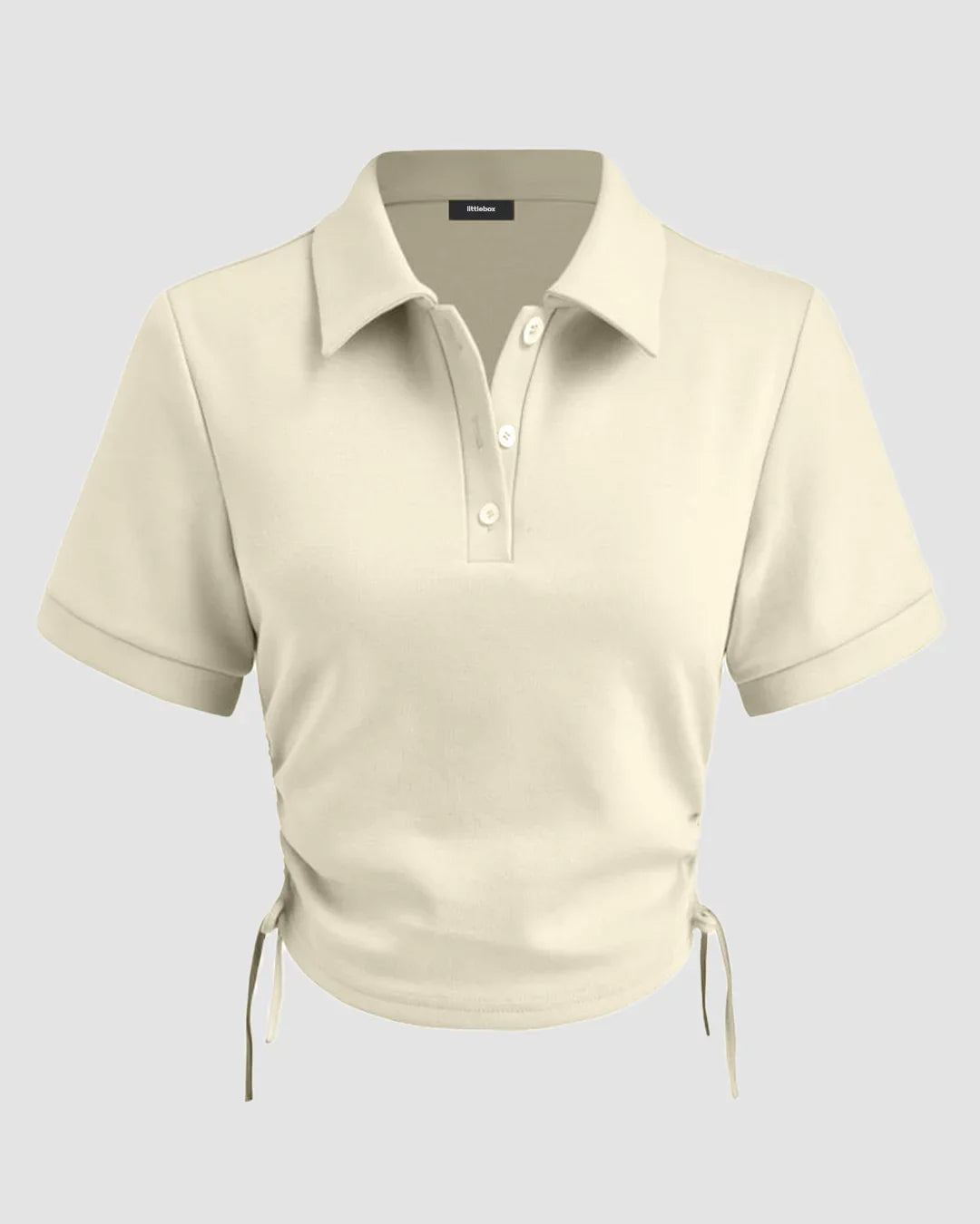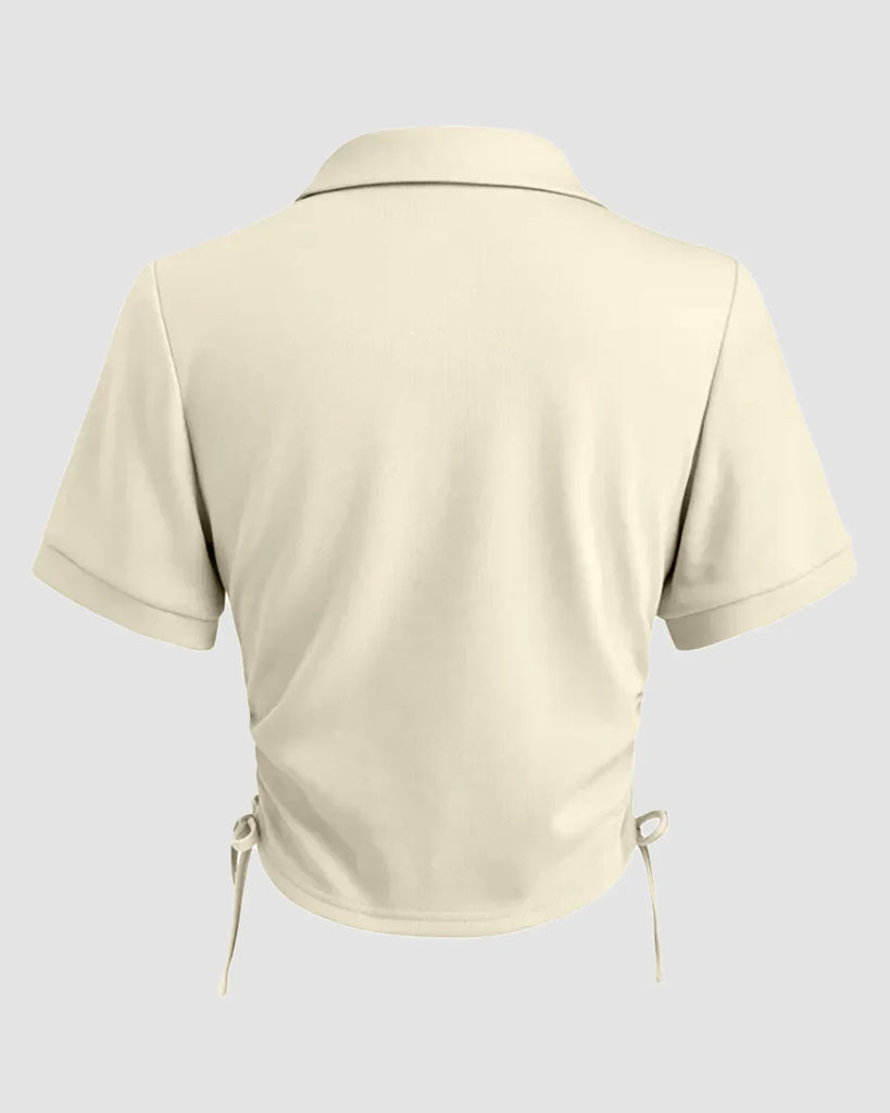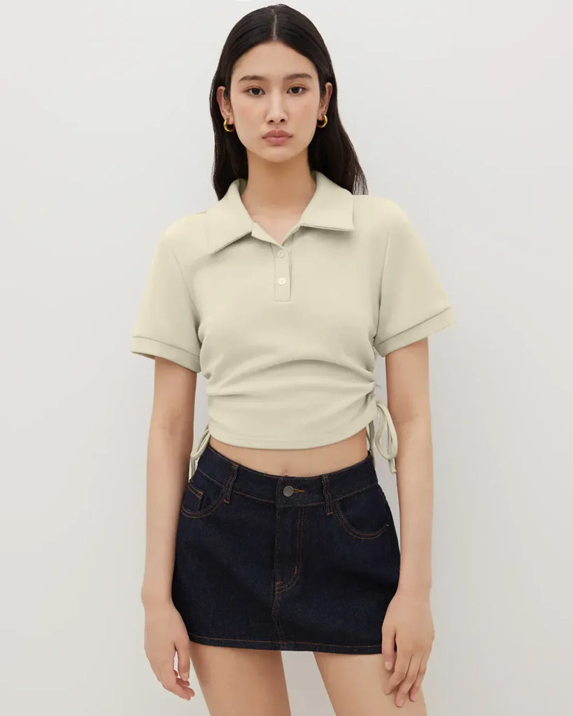 Collar Neck Ruched Side Crop Top in Apricot