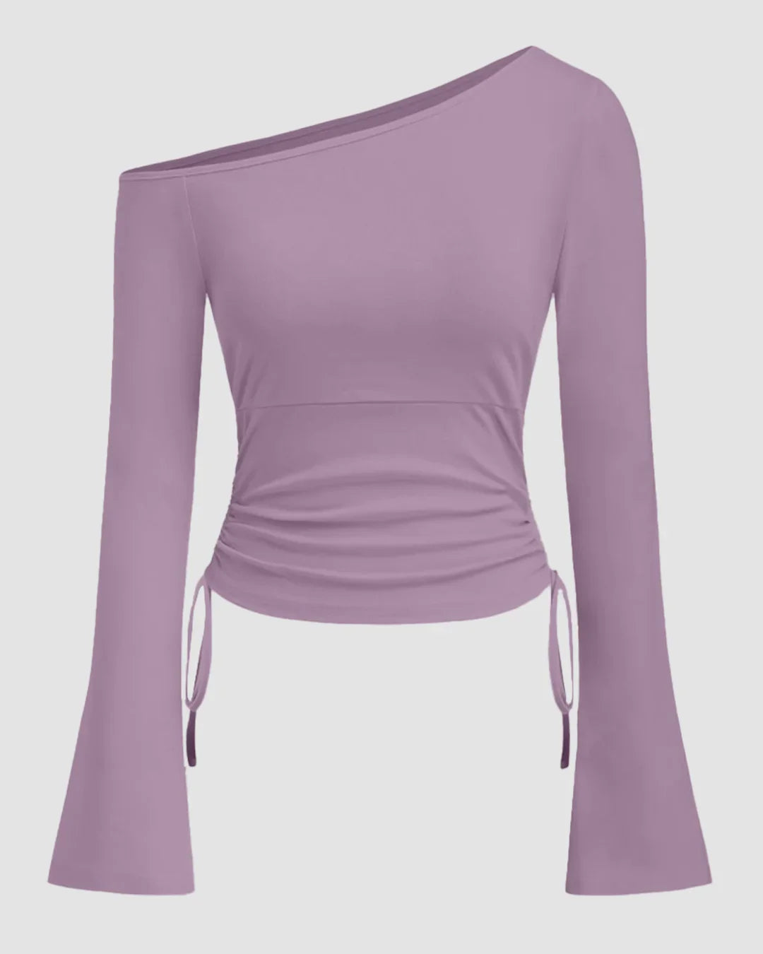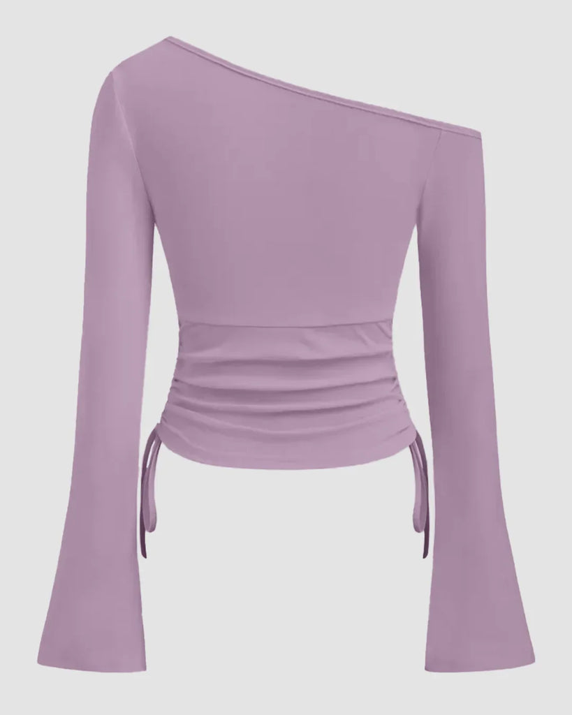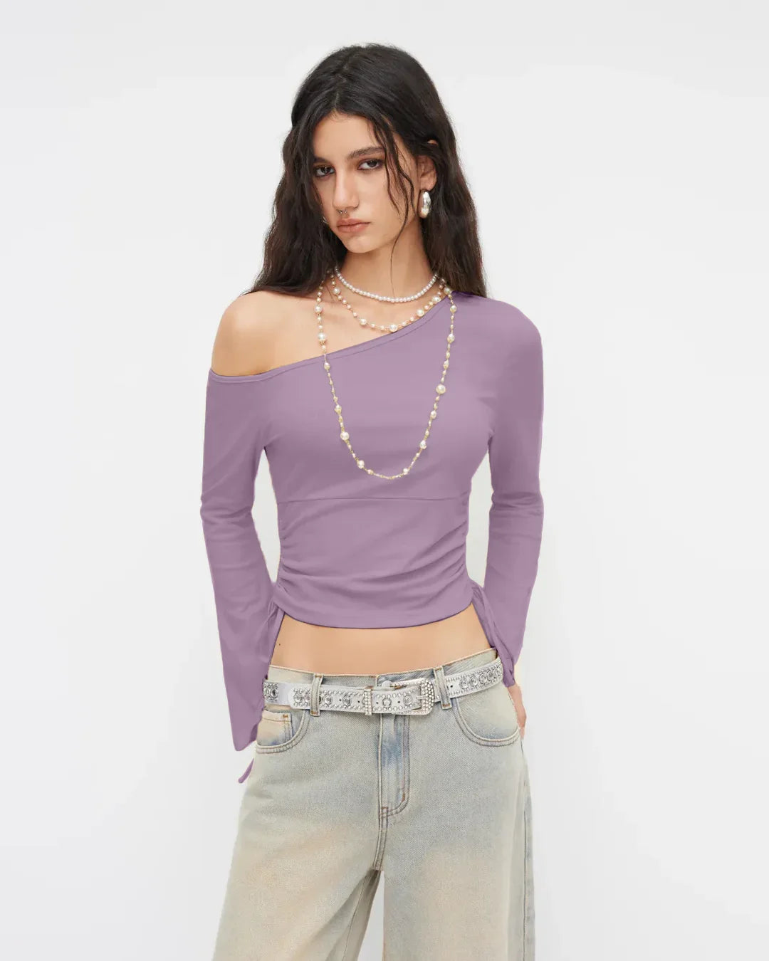 One Shoulder Ruched Asymmetric Full Sleeve Top in Lilac