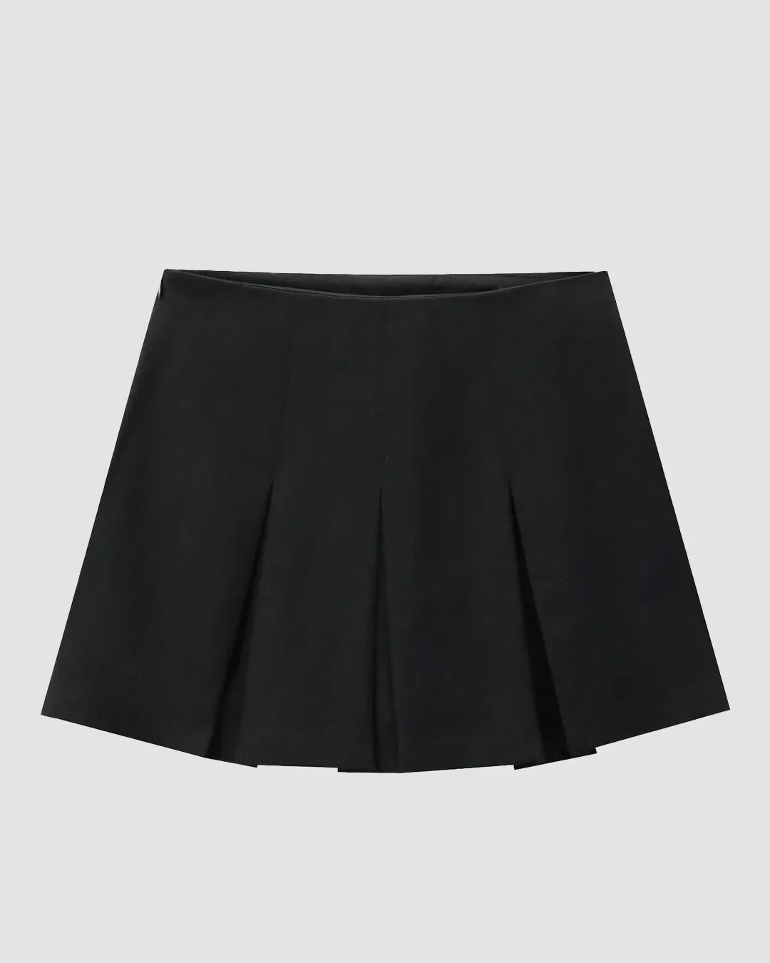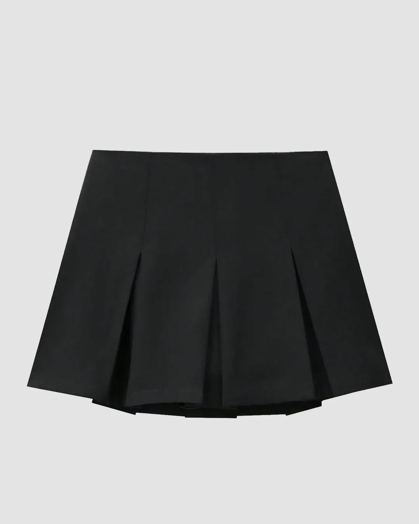 The High-Waist Pleated A-Line Mini Skirt in Black is the ultimate mix of classic and cool. Designed with sharp pleats and a flattering high waist, it brings a preppy edge to any outfit. The structured silhouette adds just the right amount of volume, making it perfect for pairing with fitted tops or oversized shirts. Crafted in soft yet durable fabric, this mini skirt blends style with everyday comfort.