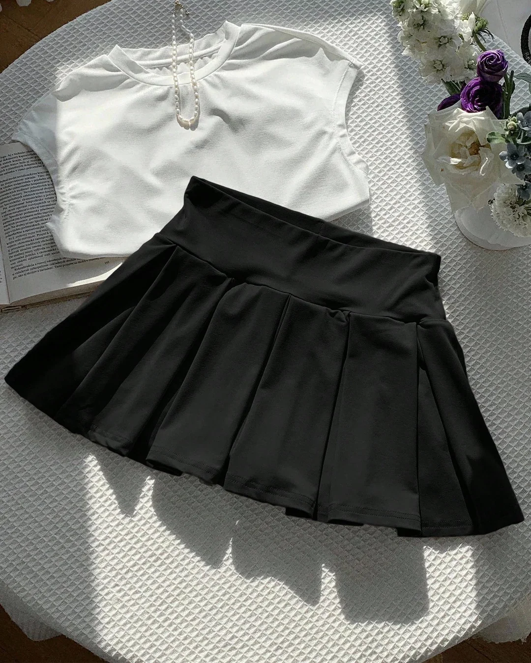 This mini skirt in black is the definition of timeless cool with a hint of playful edge. Designed with a high-rise waist and structured pleats, it brings movement and a flattering A-line shape that suits every body type. The mini skirt in black blends the charm of streetwear and the polish of minimal style, making it perfect for dressing up or down with ease.