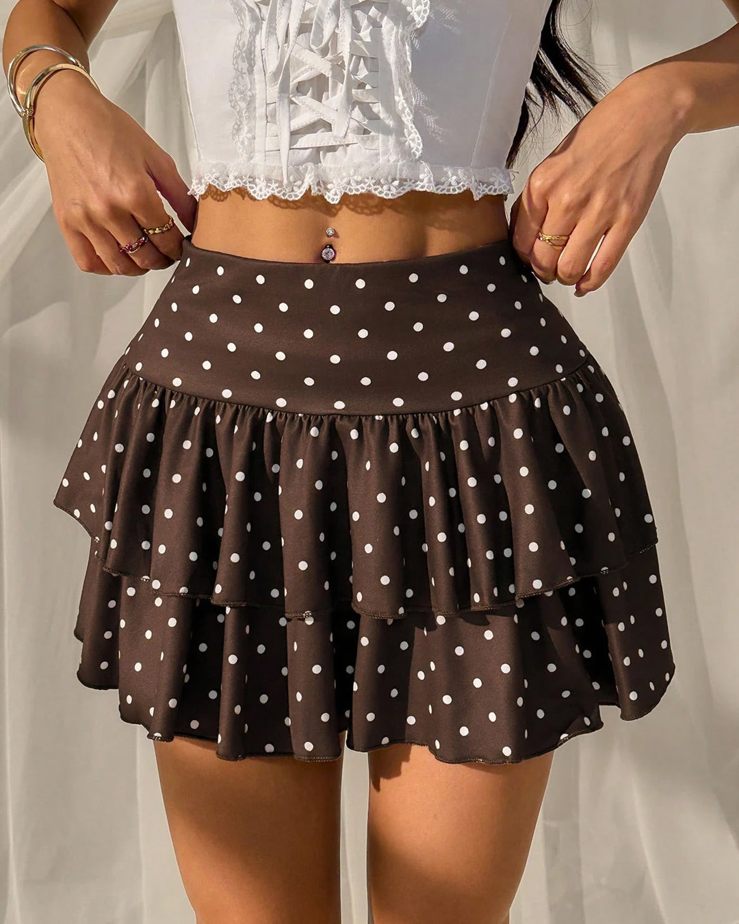 Polka Dot Print Double Layer Skirt in Brown is playful, flirty, and made for cute statement fits. This polka dot mini skirt features a double layer design that adds volume and soft movement with every step. The high waist fit defines your silhouette, while the flowy hem keeps it light and fun. Crafted in 100 percent polyester, this polka dot mini skirt feels lightweight, smooth, and easy to wear all day. The brown base with delicate dots gives it a vintage inspired yet trendy vibe.