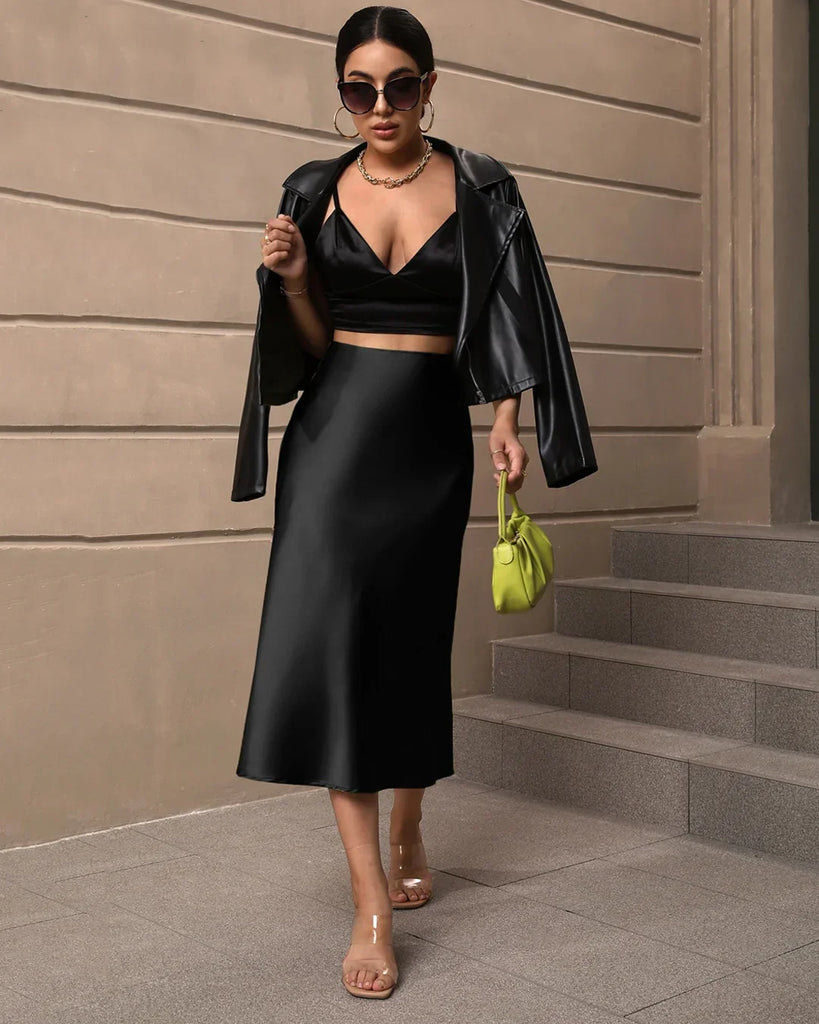 You can wear this Midi Skirt in Black for office days, brunch outings, casual evenings, or even dinner plans. The lightweight fabric feels soft on the skin and keeps the skirt airy and comfortable all day. It works well with fitted tanks, cropped tops, or structured shirts depending on the vibe you want. Style it simple for daytime or elevate it with accessories for a refined evening look.