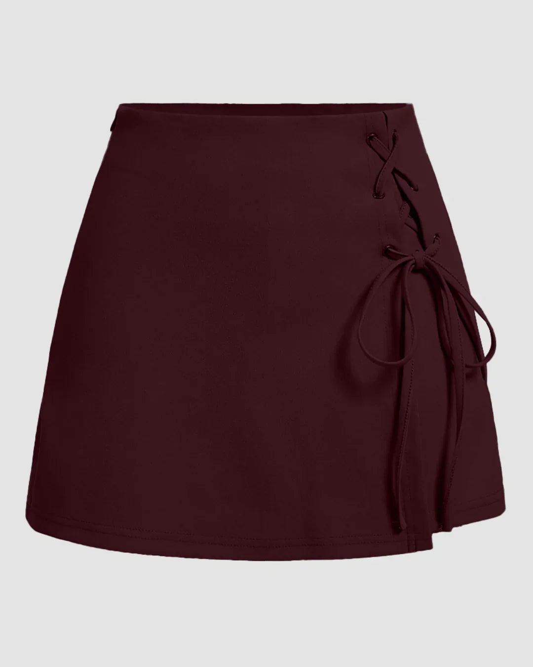 Side Lace-Up Wrap Mini Skirt in Chocolate