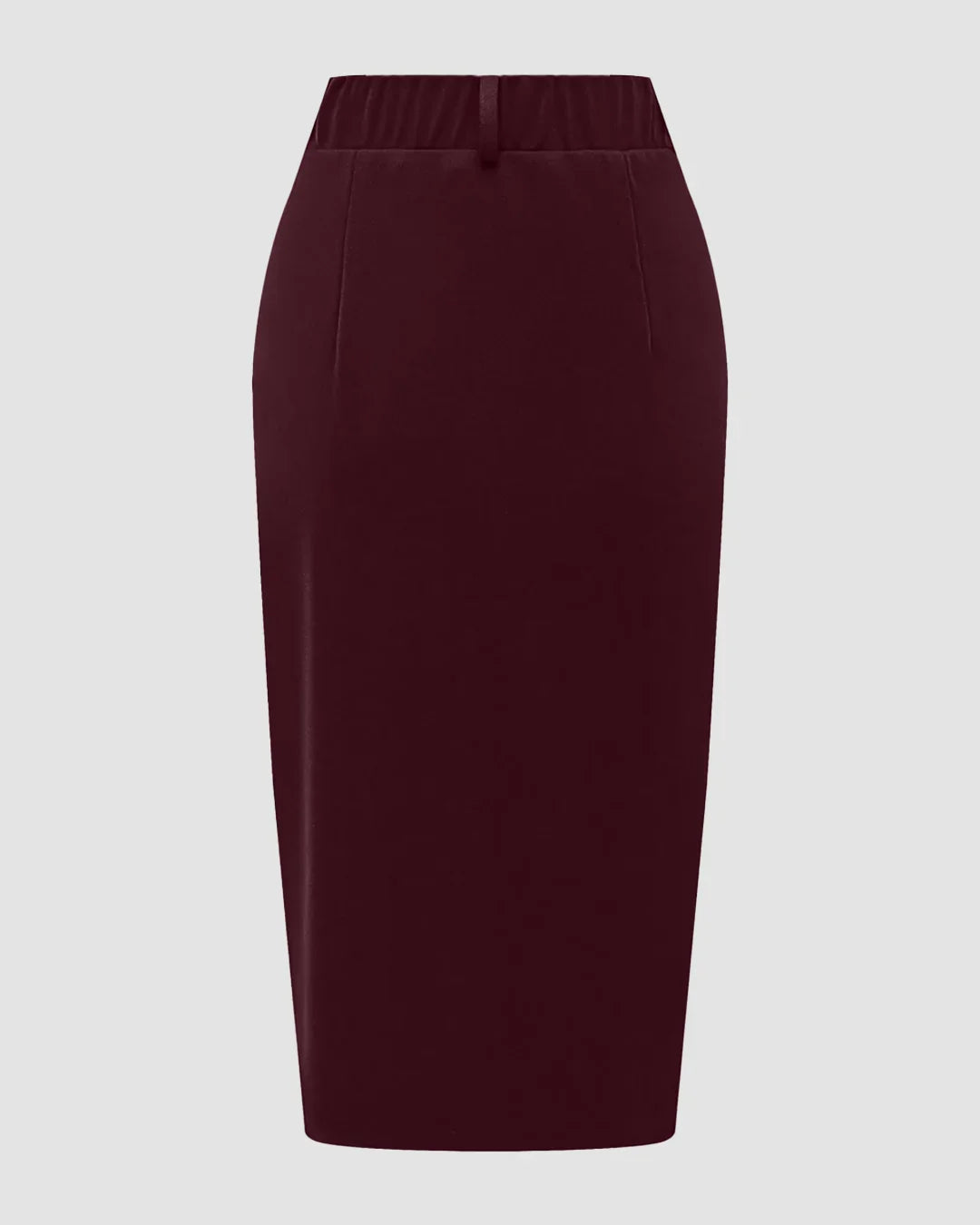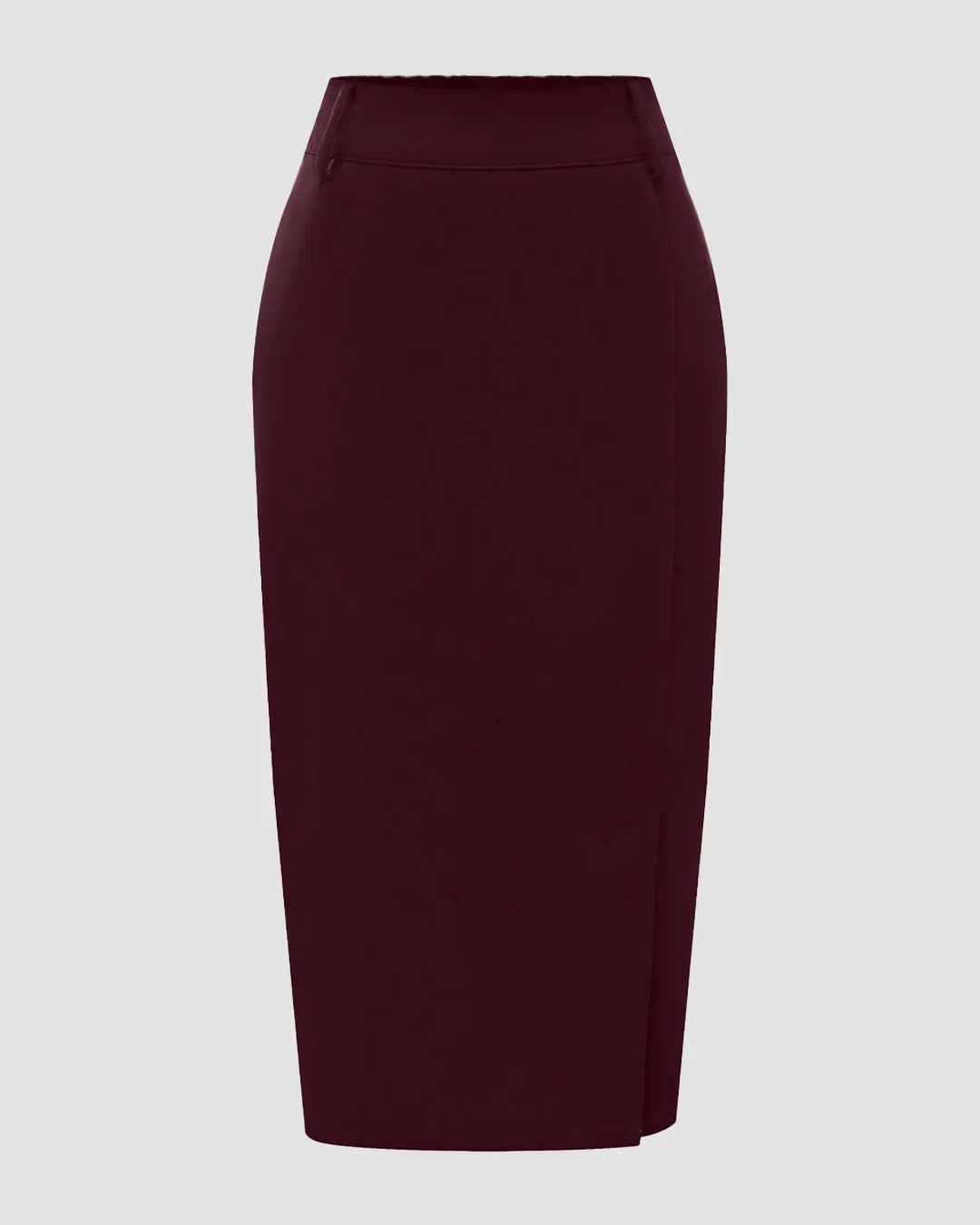 Solid Color Front Slit Pencil Knee-Length Skirt in Maroon