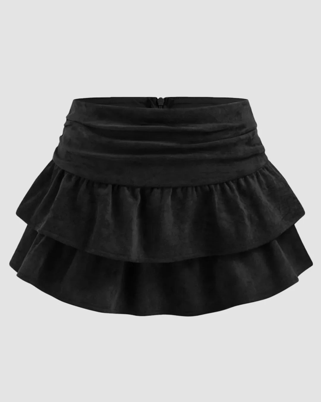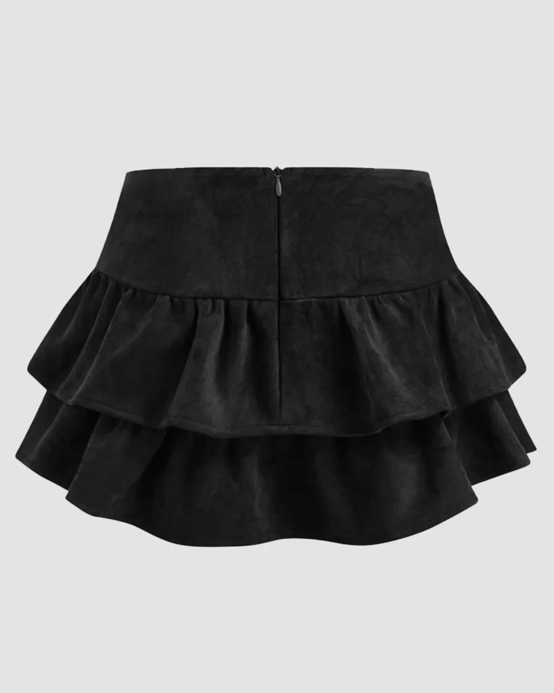Suede Low Rise Ruched Layered Mini Skirt in Black is all about flirty volume and soft drama. This mini skirt in Black comes with double-layered ruffles and a ruched waistband that hugs just right. The suede finish adds a luxe texture without feeling heavy, while the short hem keeps things playful and bold. Whether you're leaning into feminine or edgy vibes, this mini skirt in Black slips in effortlessly.