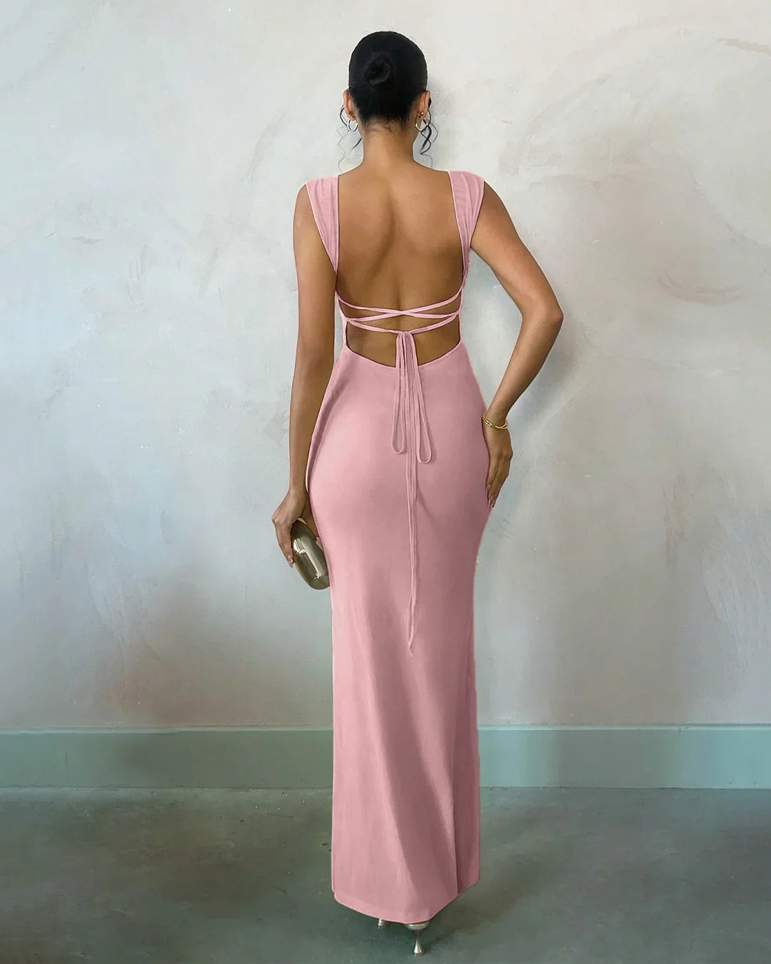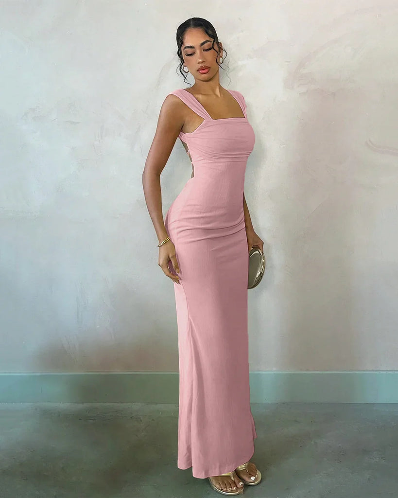Bodycon Maxi Dress with Square Neck in Dusty Pink
