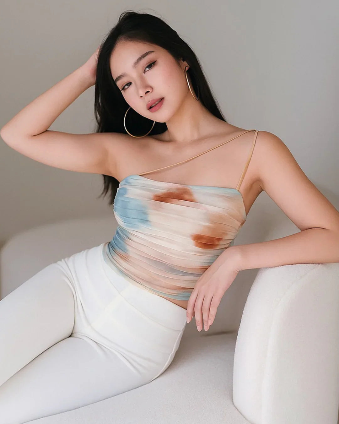 This mesh print top brings a soft, artistic vibe with its layered texture and modern fit. Designed with a lightweight mesh fabric and subtle ruching, it creates a flattering shape that sits smoothly on the body. The abstract print adds a playful touch, while the cropped length keeps the look fresh and trendy. This mesh print top feels stylish, airy, and easy to wear.
