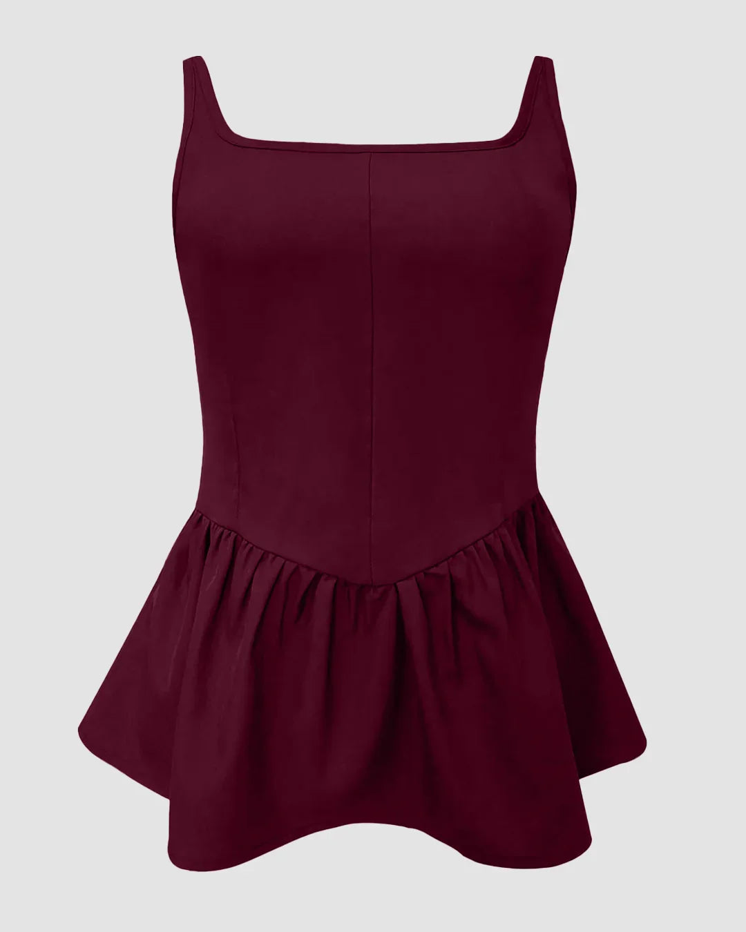 Burgundy Pleated Sleeveless Peplum Top