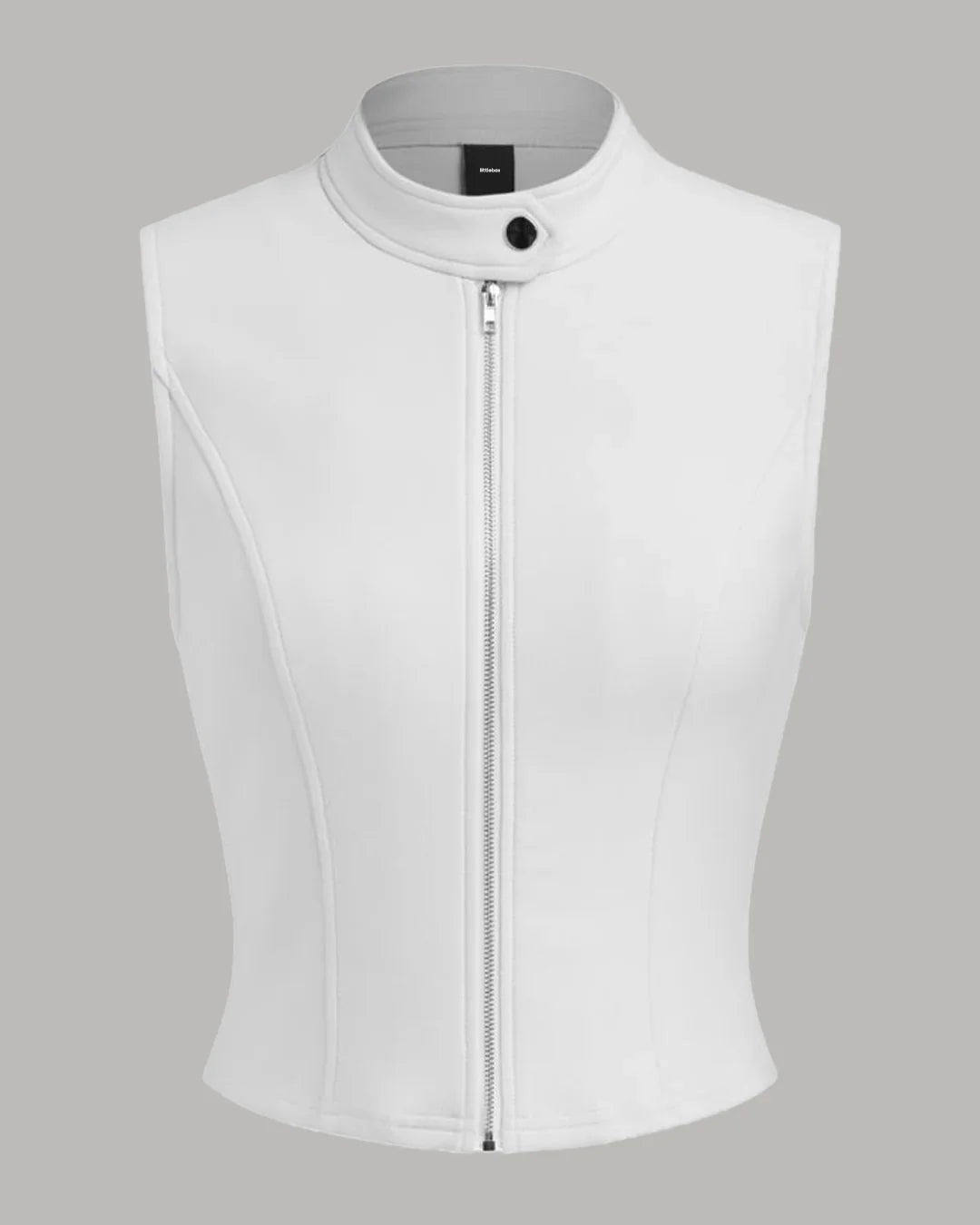 Minimal yet bold, this high neck zipper front design redefines everyday style. The sleek zip closure and tailored seams give this tank top a structured finish, while the high neck detail adds a modern touch. Made from a stretch-friendly polyester-elastane blend, it balances comfort with an edgy fit.
