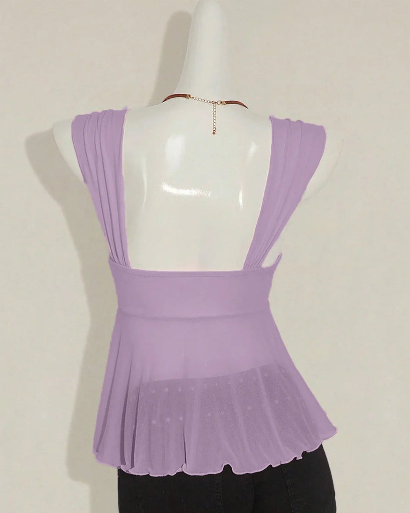 Sleeveless Tie Front Pleated Ruffle Top in Lilac
