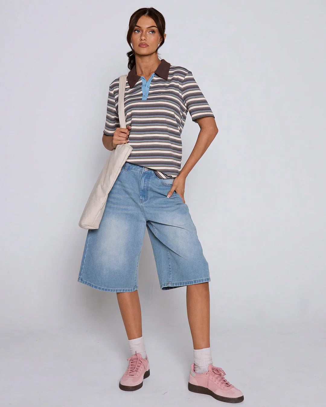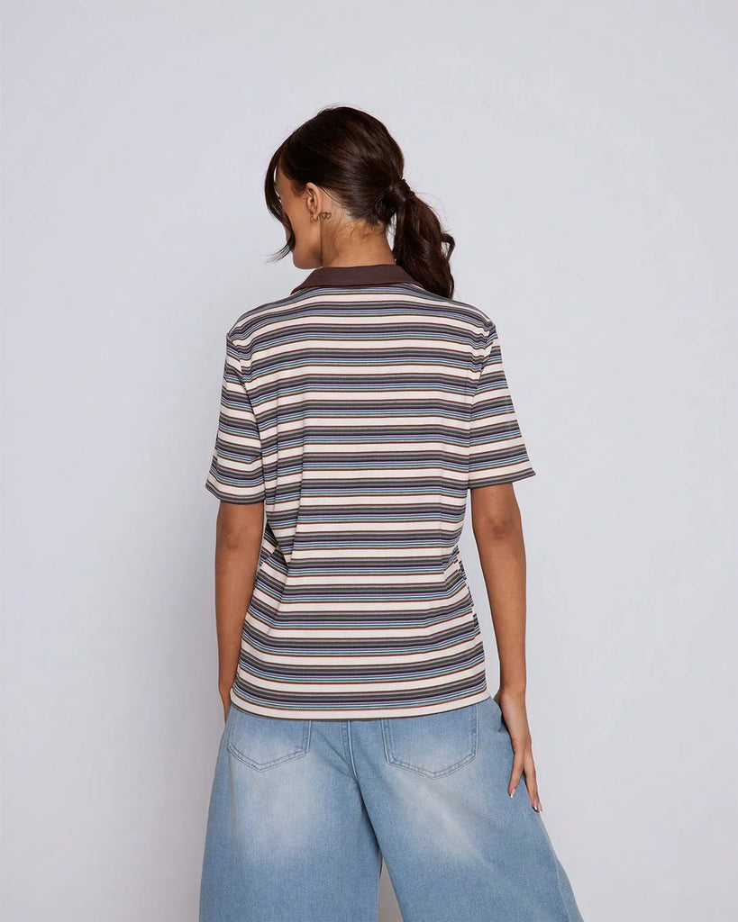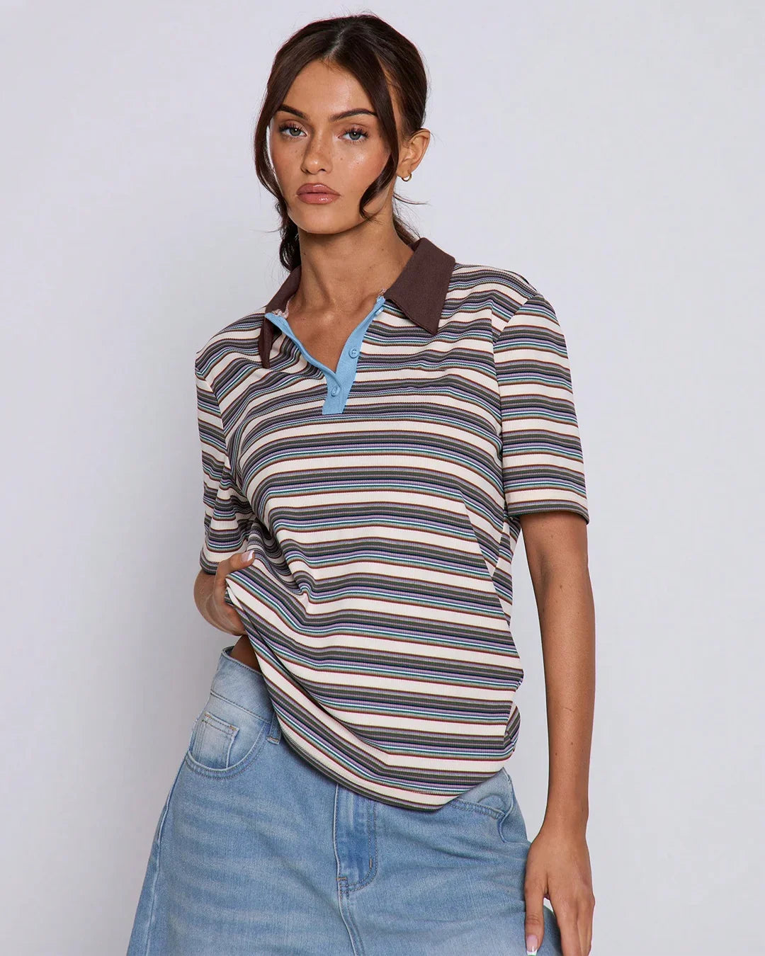 Striped Polo Collar T-Shirt with Contrast Detailing