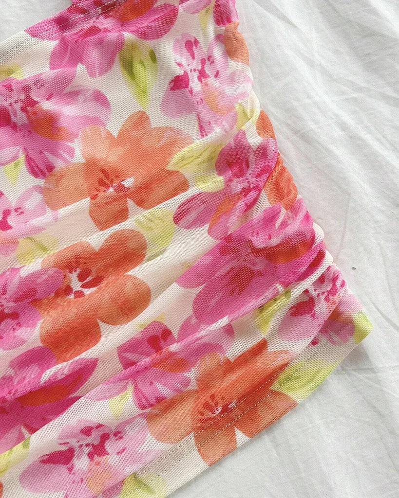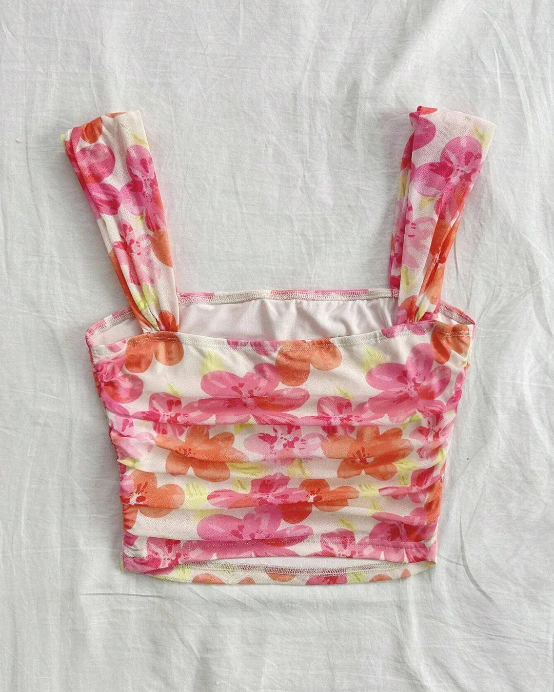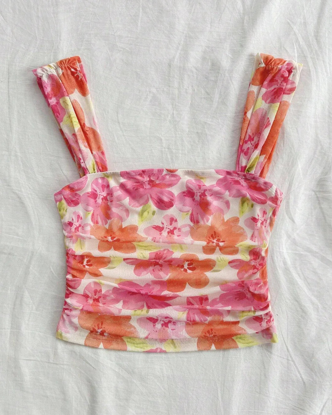 Tropical Bloom Ruched Strap Top