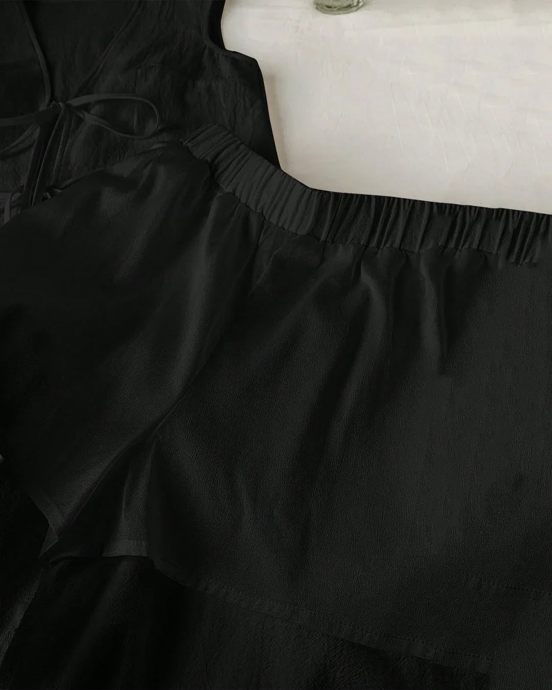 Black Sleeveless Tie-Back Top & Wide-Leg Pants Co-Ord Set is the ultimate laid-back yet polished outfit for any season. The sleeveless top features an open-front tie-back design, giving it a relaxed yet stylish edge. Paired with flowy black wide leg pants, this set delivers both comfort and sophistication in one easy look.