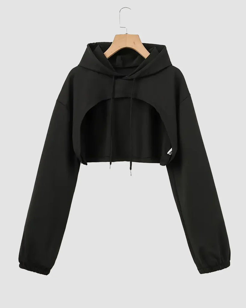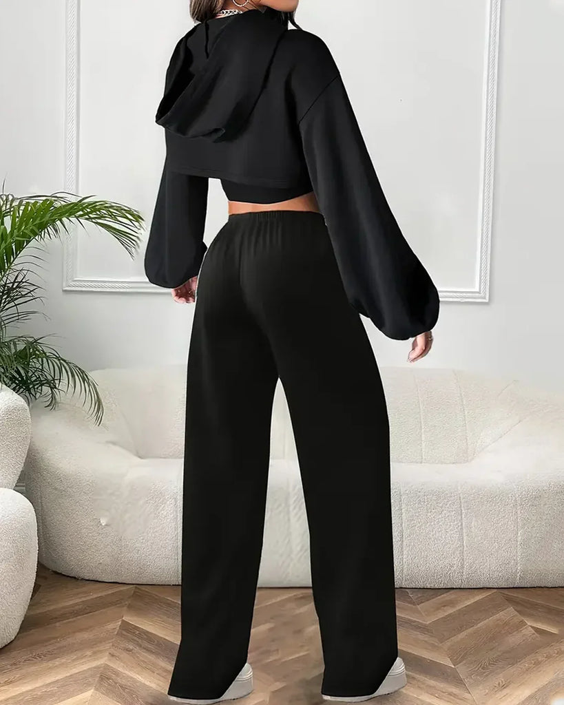 Crop Top & Hoodie with Wide-Leg Trousers Co-ords Set in Black