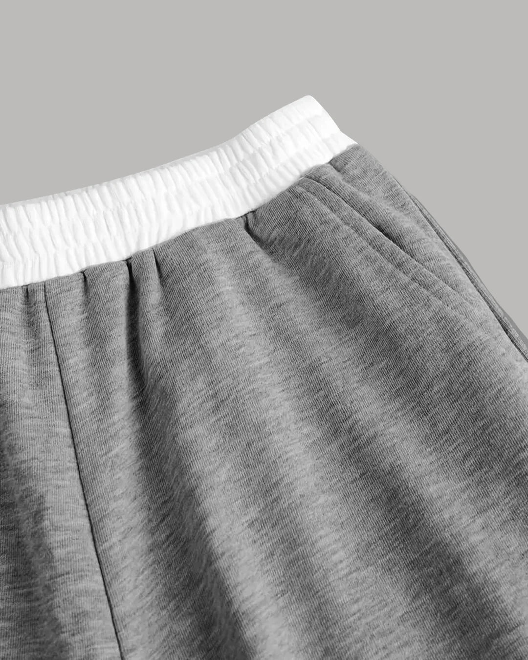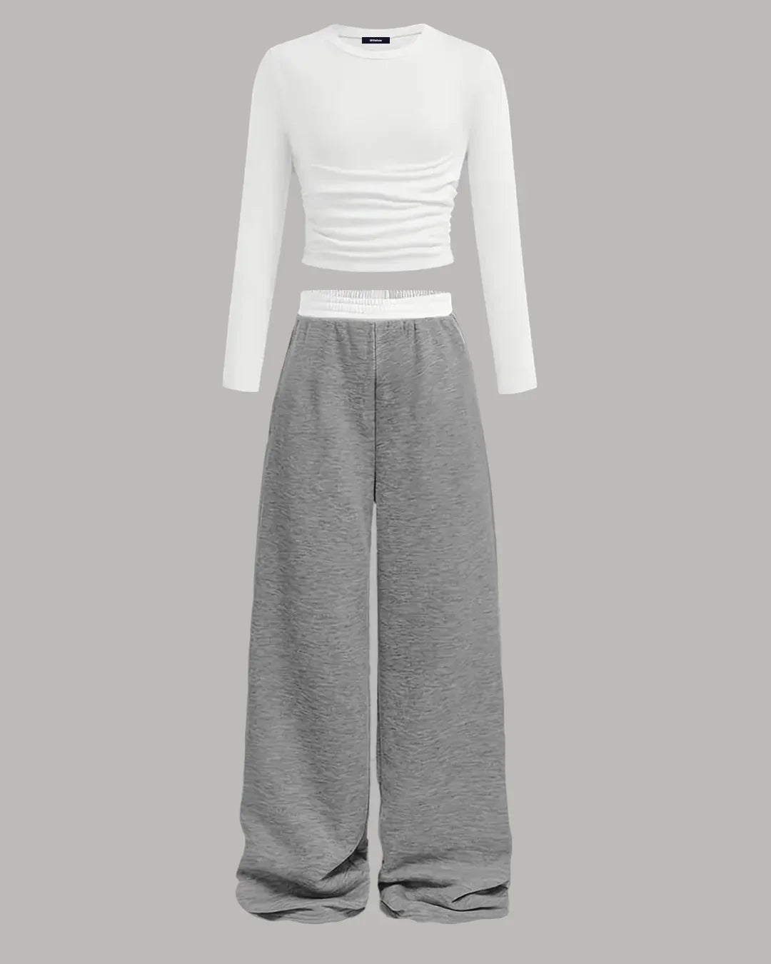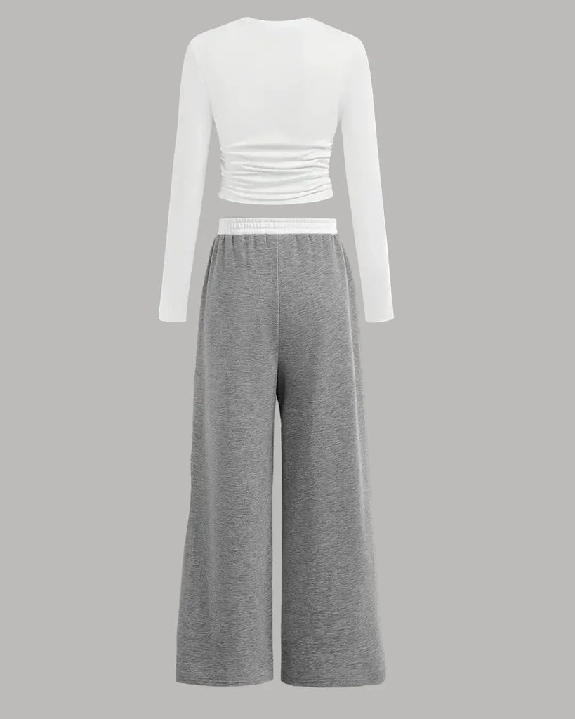 Mélange Long Sleeve Fitted Top & Wide-Leg Pants Set
