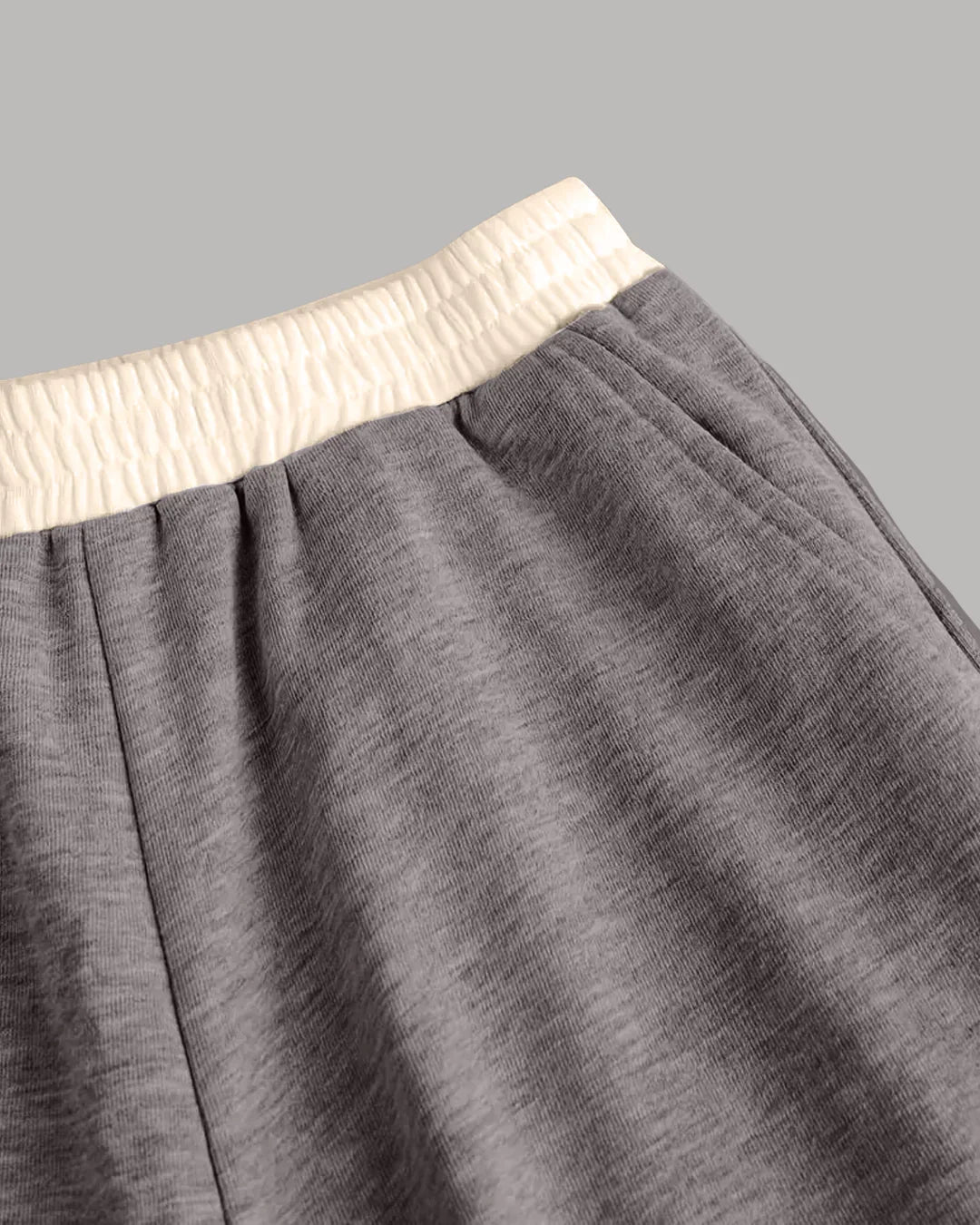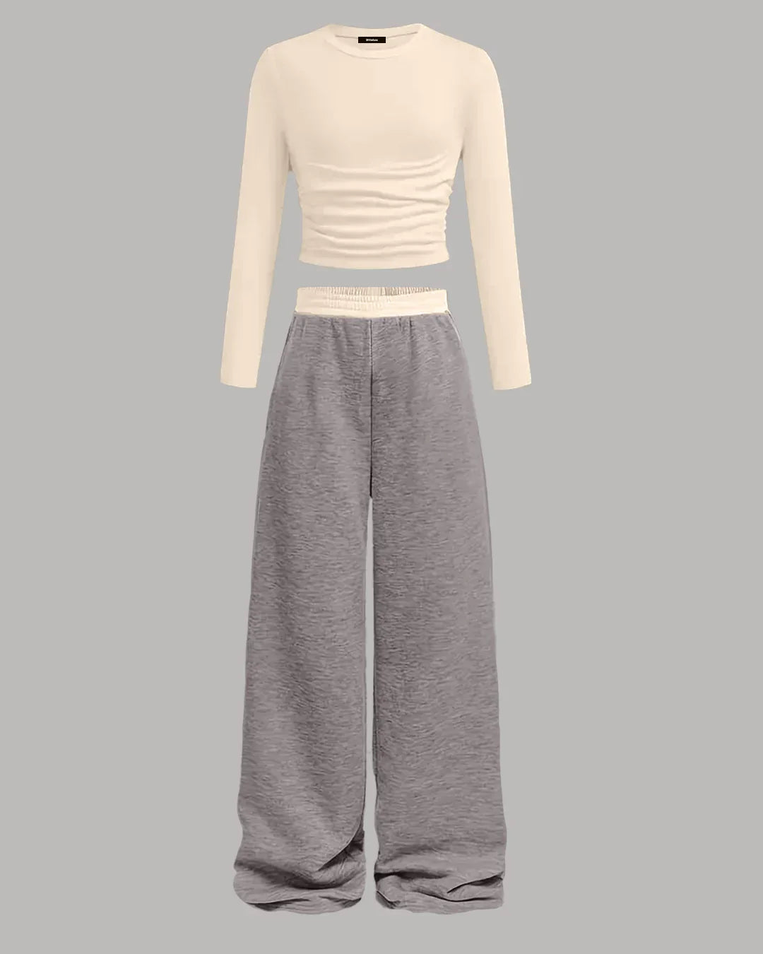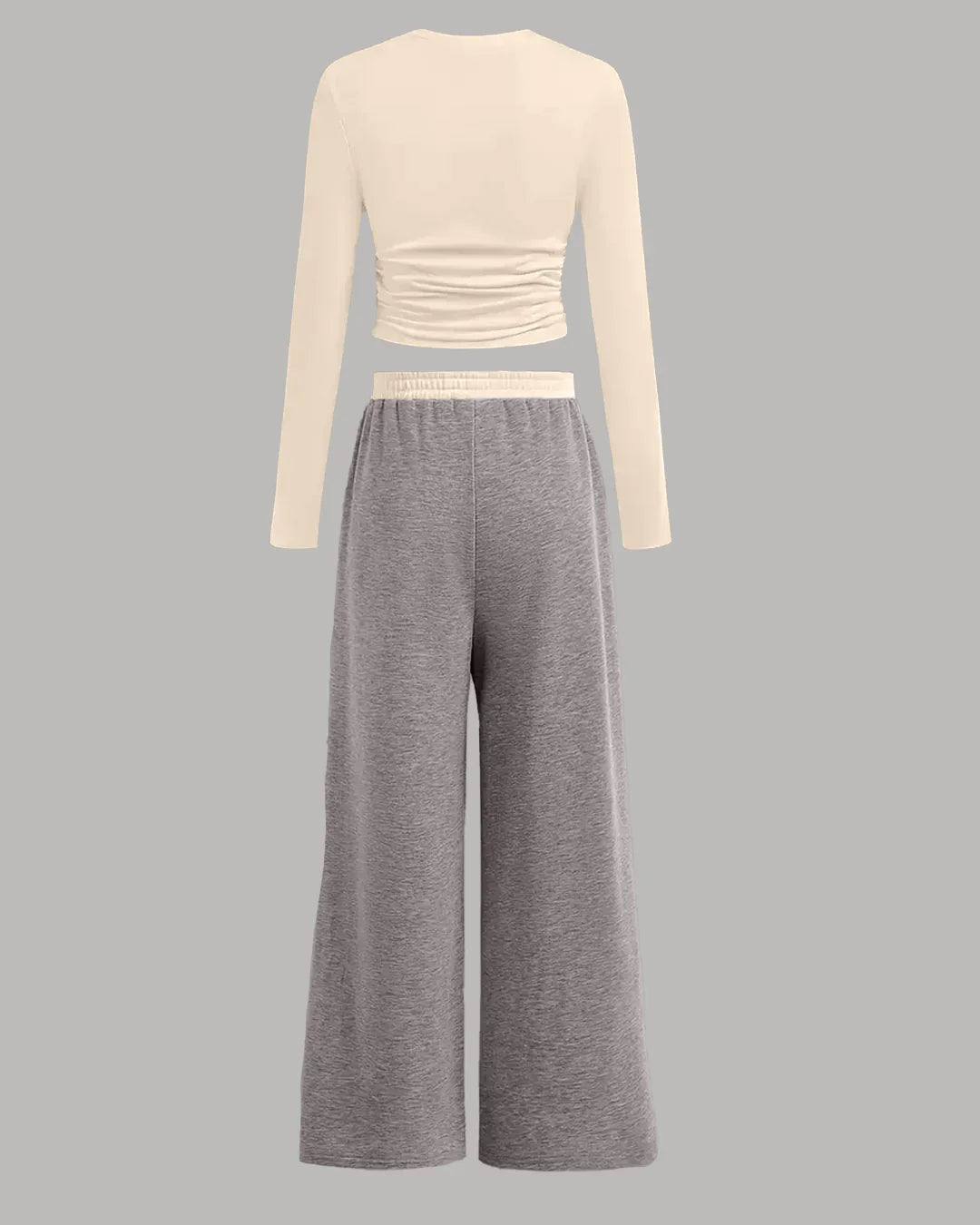 Melange Long Sleeve Fitted Top & Wide-Leg Pants Set