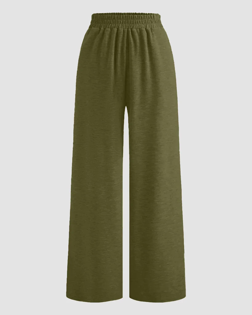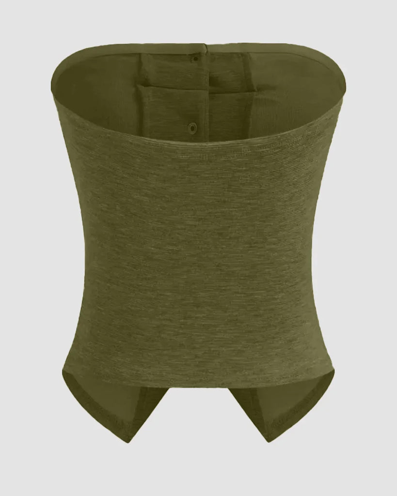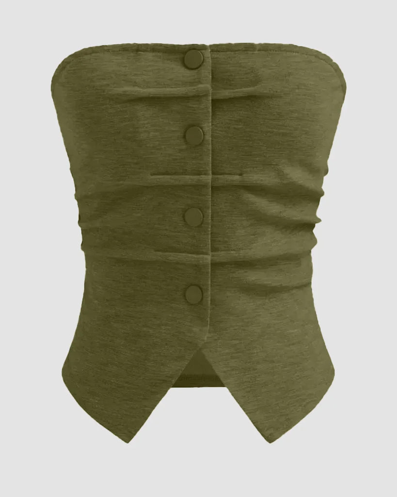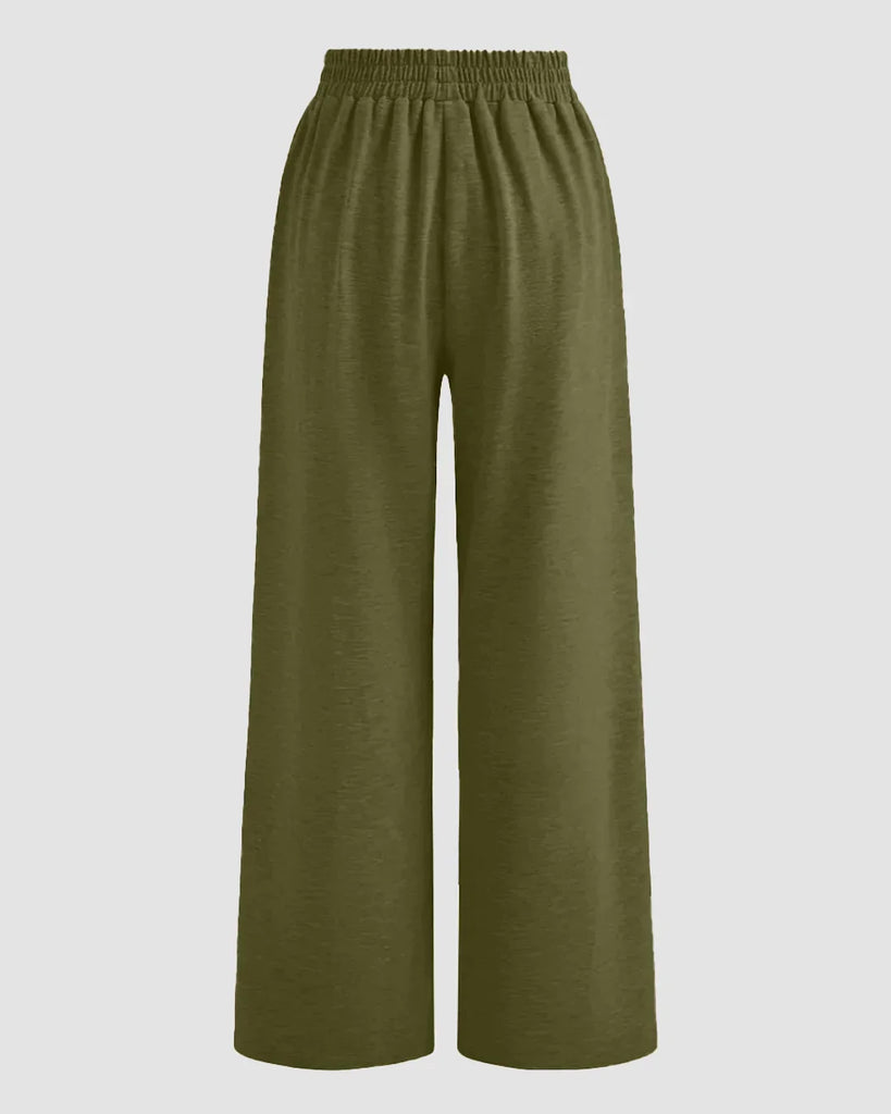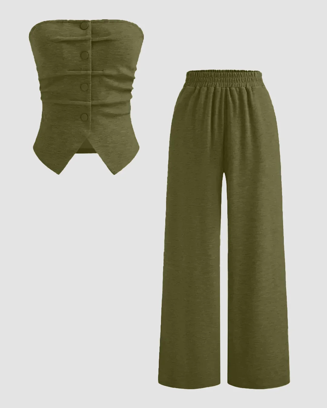 Solid Button Sleeveless Top With Solid Wide Leg Trousers In Avocado