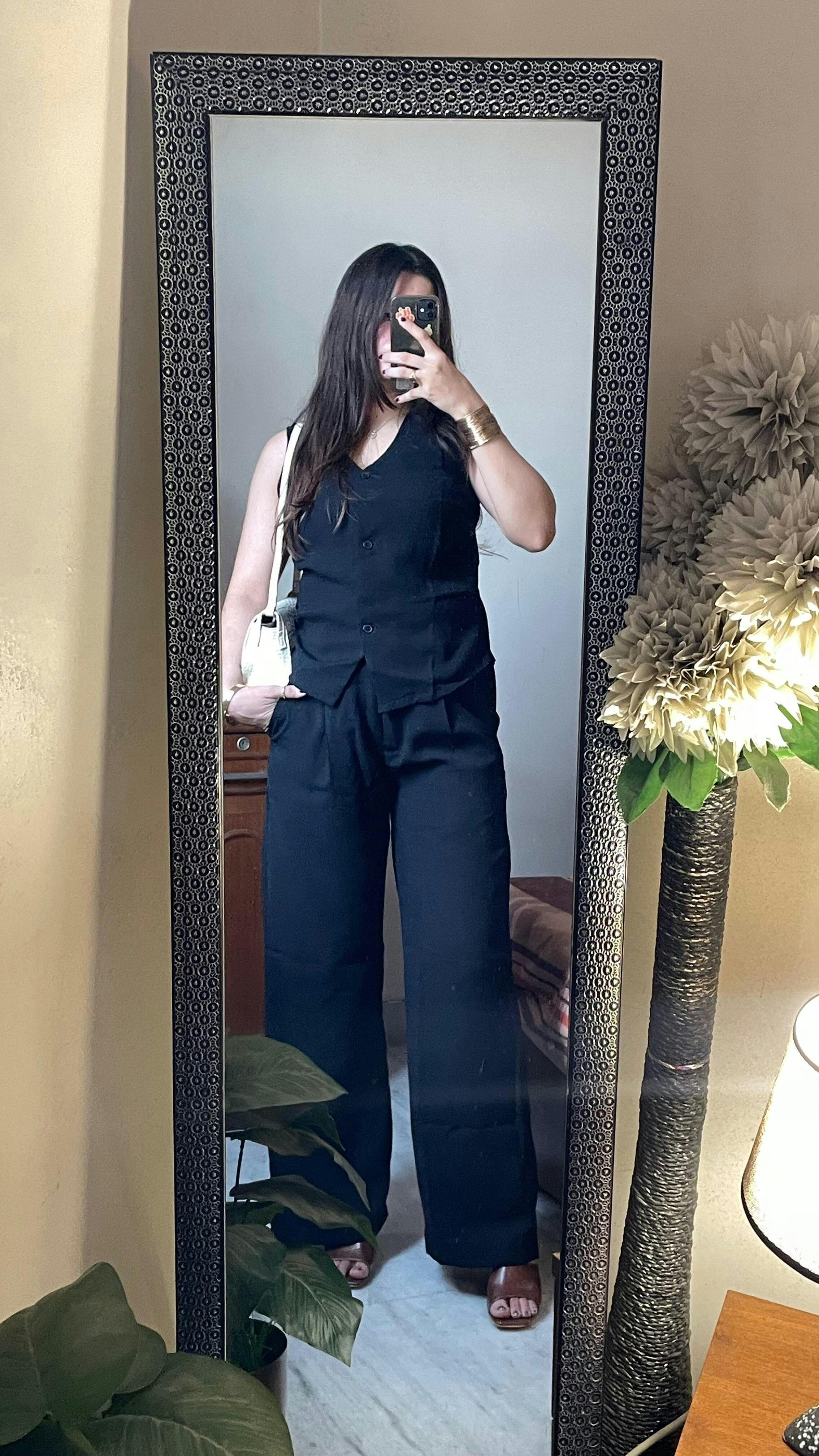 Made from a premium polyester-cotton blend, the fabric offers structure while keeping things breathable. This trousers and vest set is a versatile staple that can easily be dressed up with heels or kept relaxed with sneakers for a more casual feel.