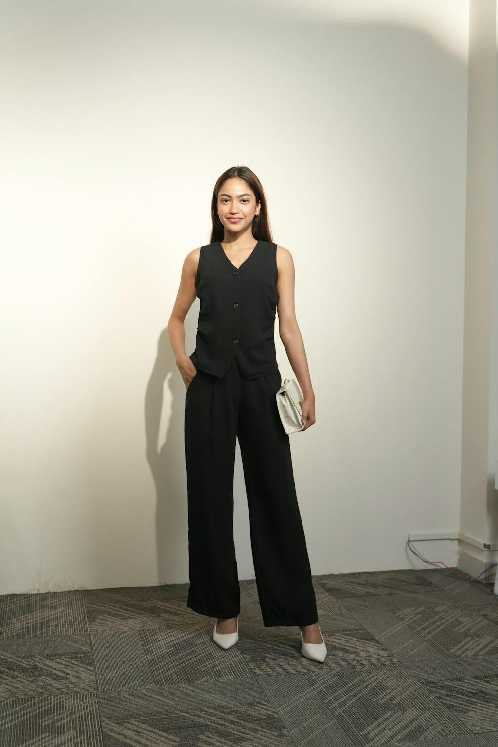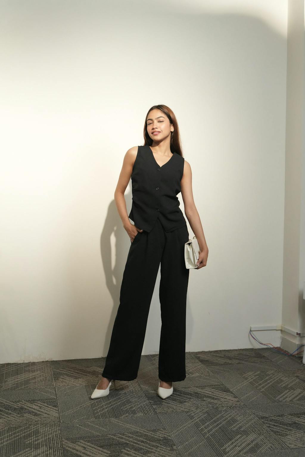 - Evening Look: Add heels and a bold chain necklace for a structured glam fit