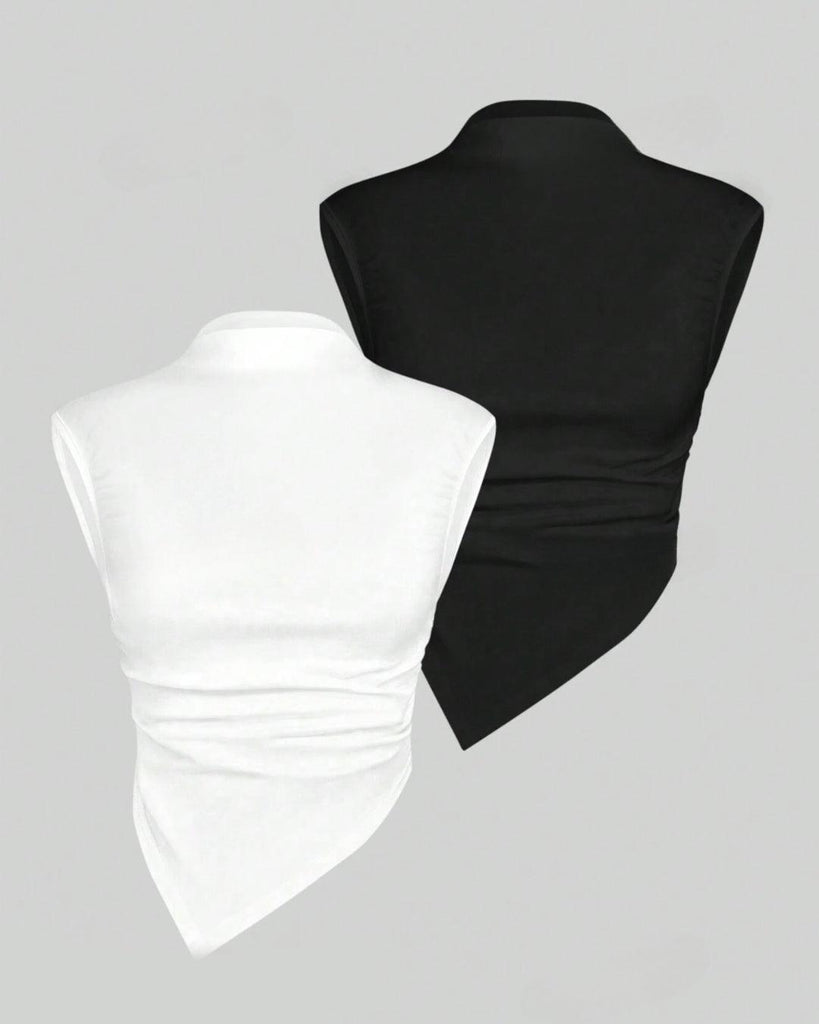 - Cooler Seasons: Try the combo sets like the High-Neck Ruched Long-Sleeve Top. Style with wide-leg trousers and ankle boots for a cozy, put-together vibe on cooler days.