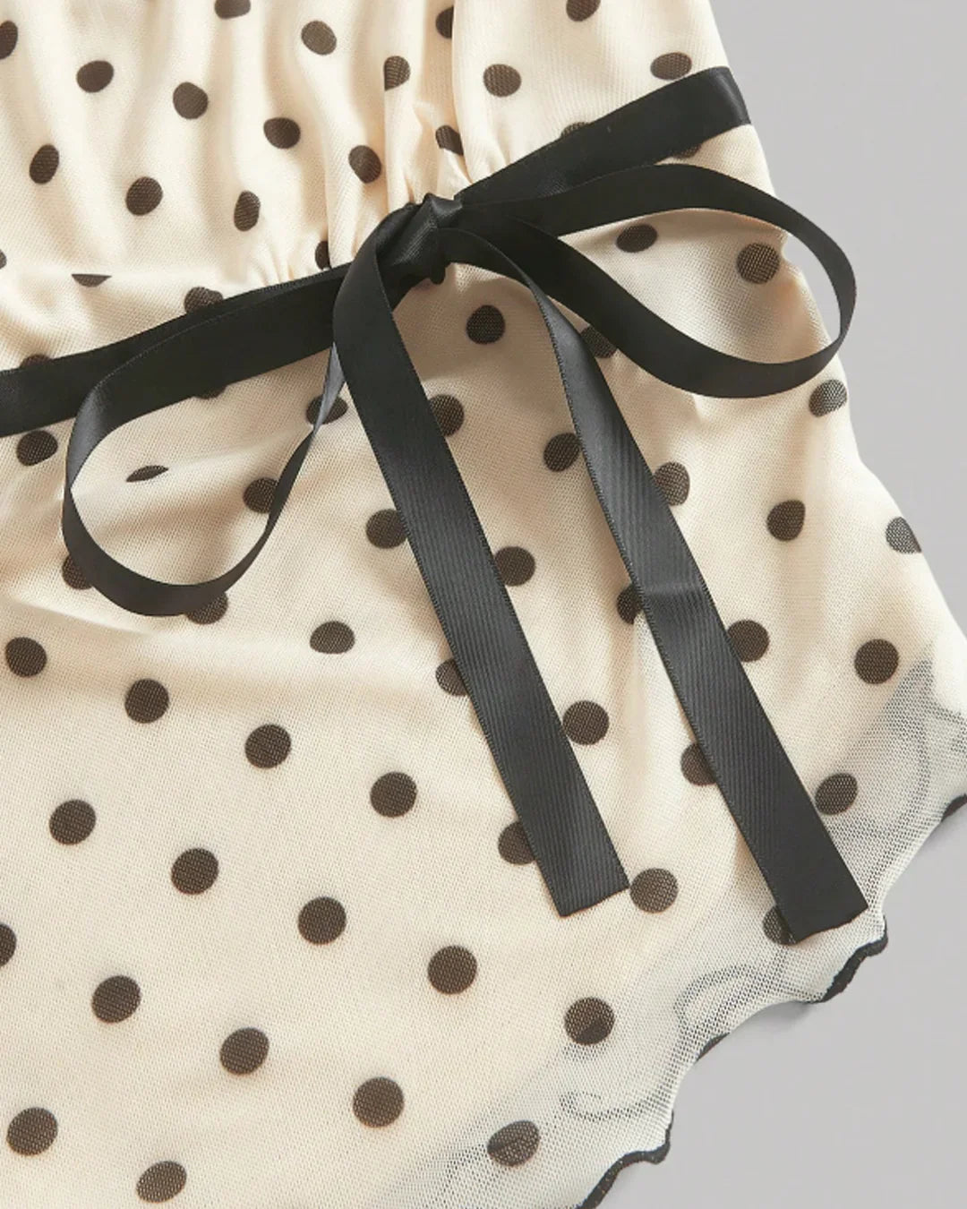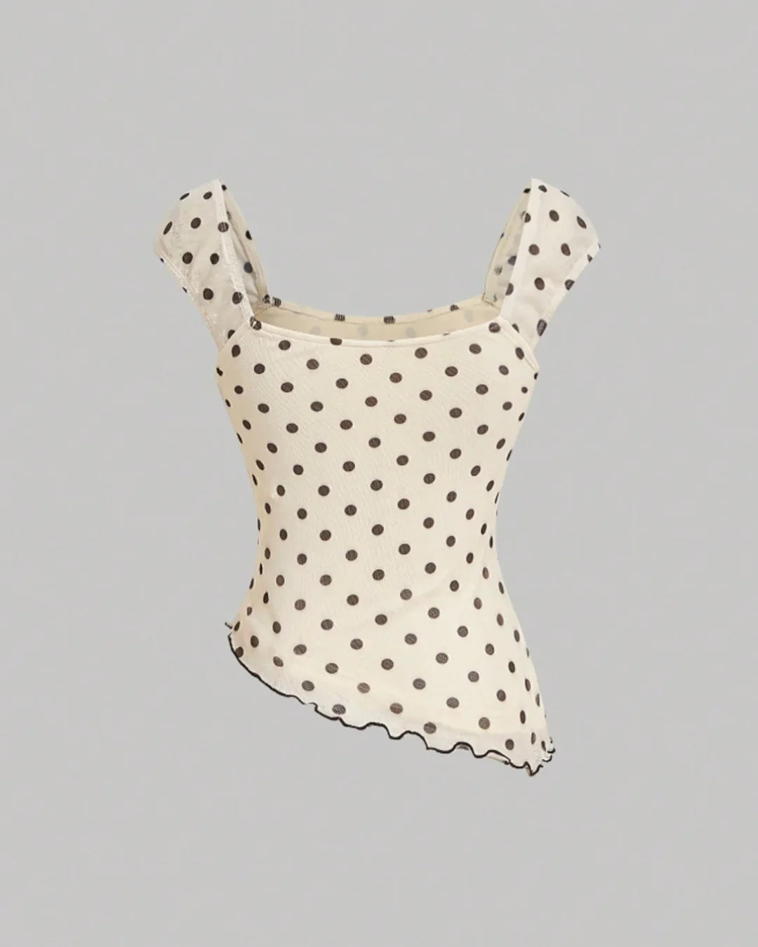 Asymmetric Bow Tie Polka Dot Ruched Hem Top