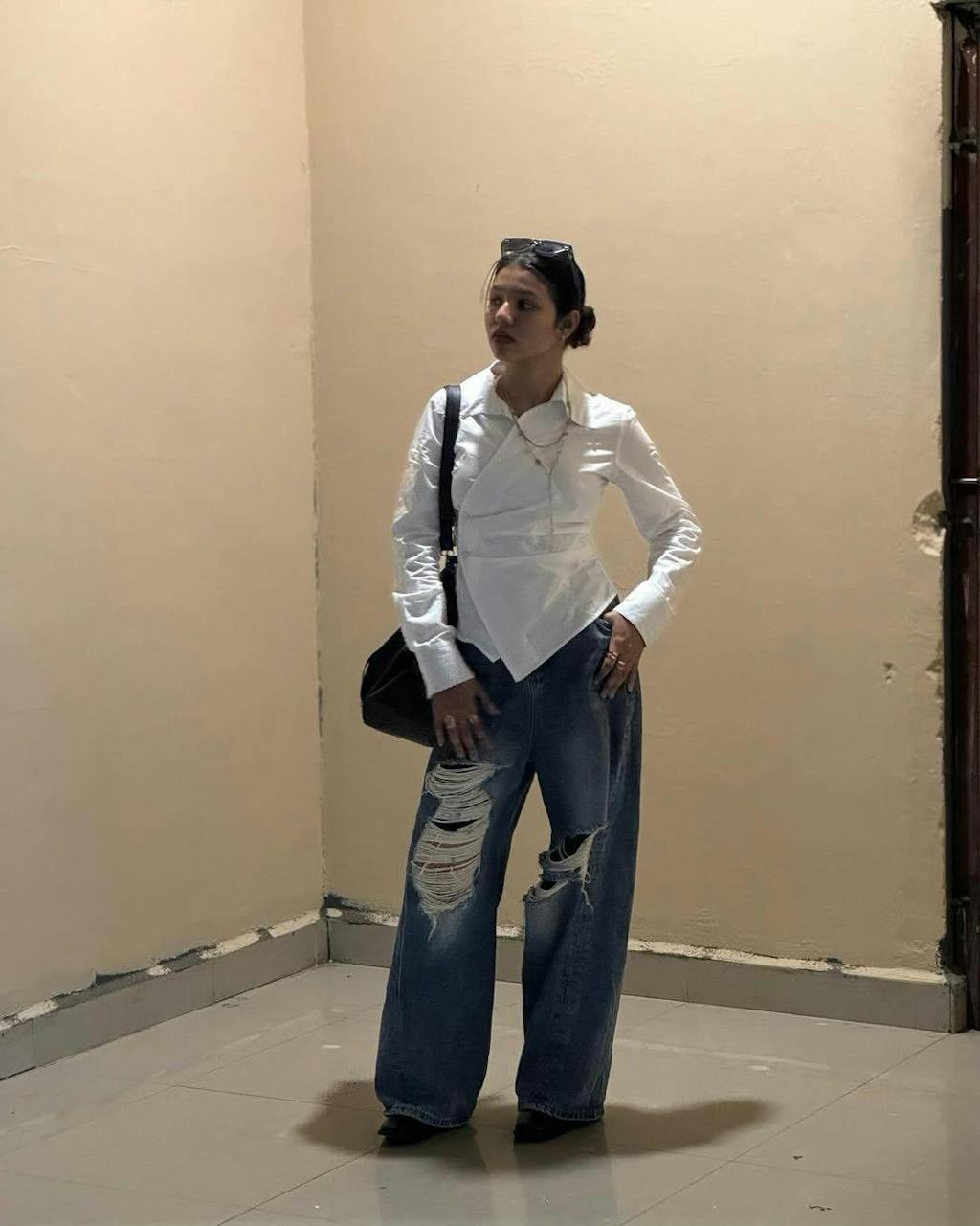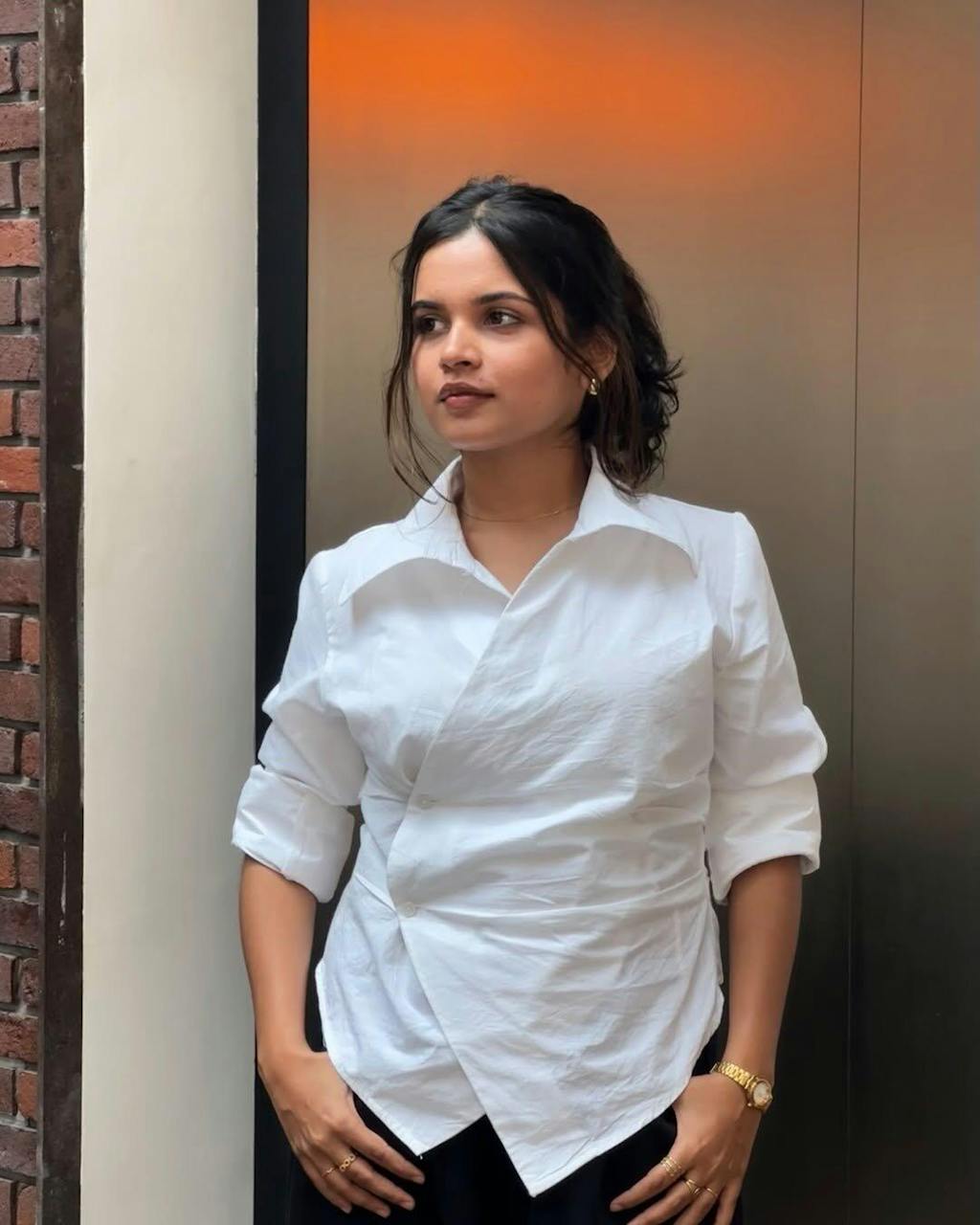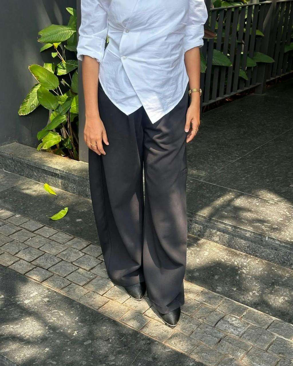 • Night glam: Black trousers + heels + bold earrings for a sharp finish.