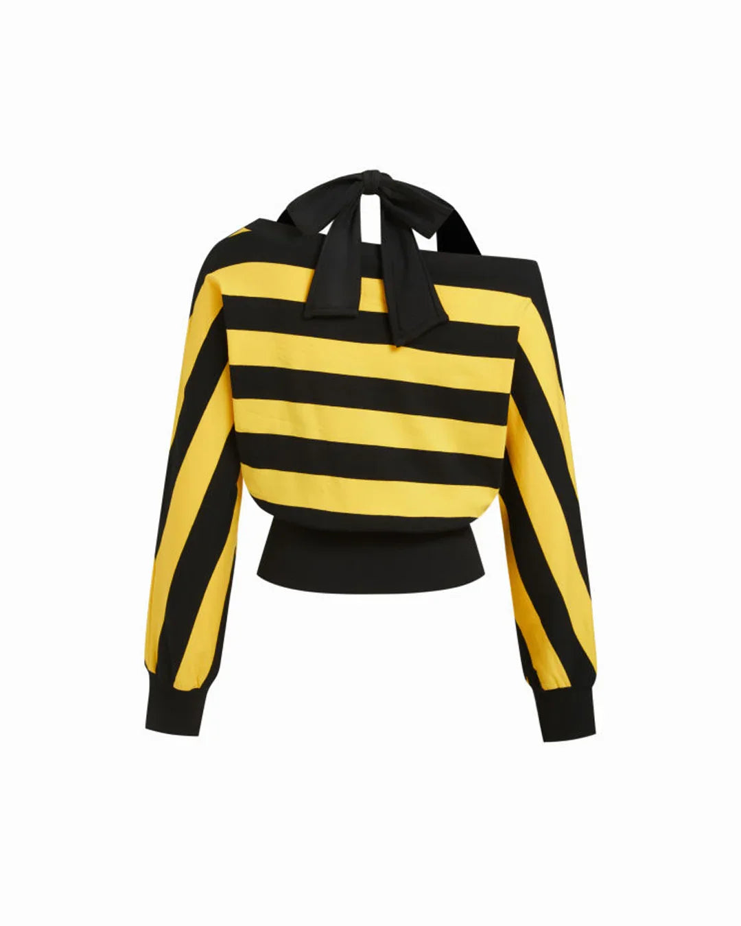 Asymmetrical Neck Long Sleeve Striped Two Tone Top is that bold piece your wardrobe was waiting for. Designed with an eye-catching asymmetrical neckline and contrast stripe pattern, it instantly adds edge to your everyday outfits. The relaxed upper fit balanced with a structured waistband creates a flattering silhouette that feels both comfy and stylish.