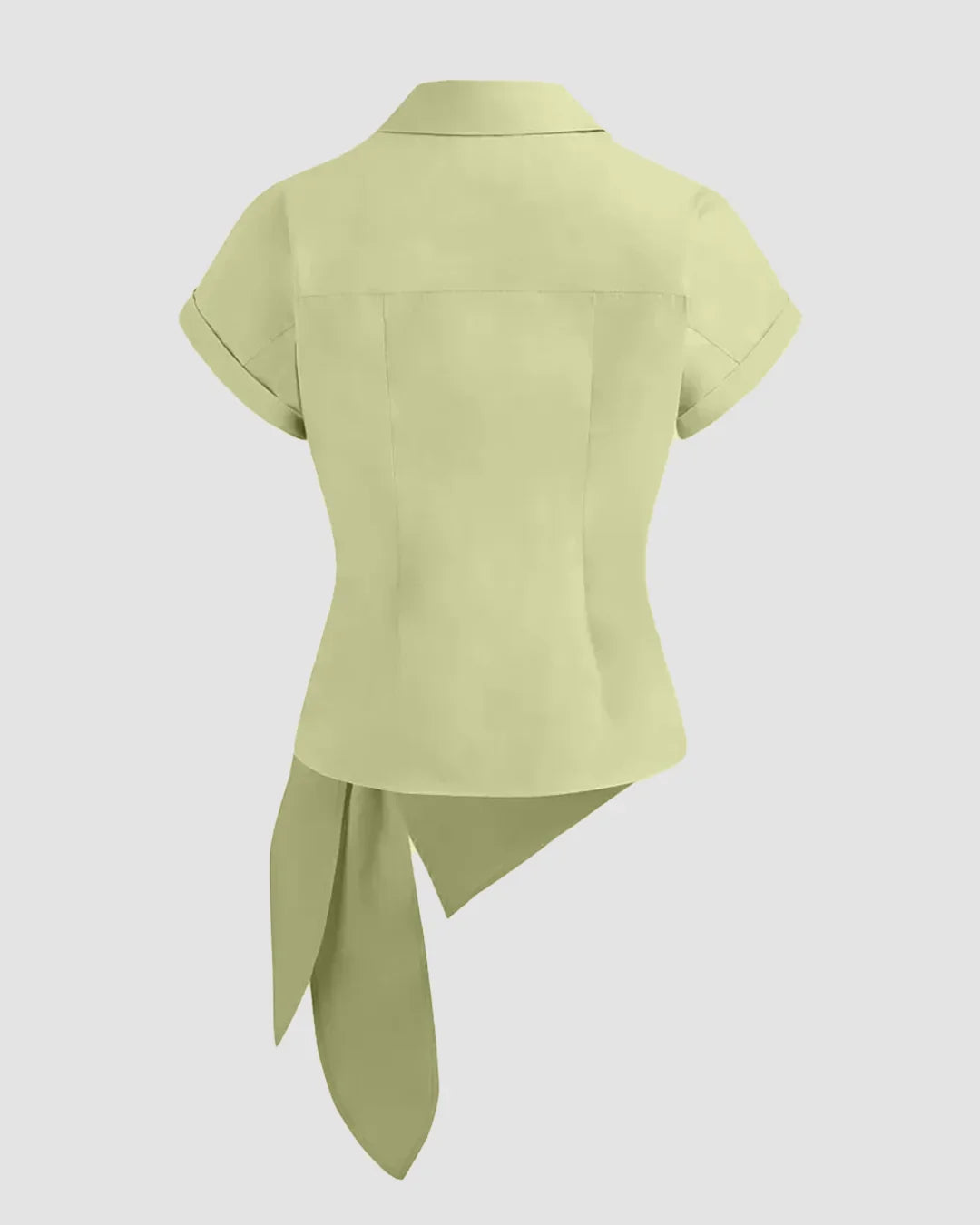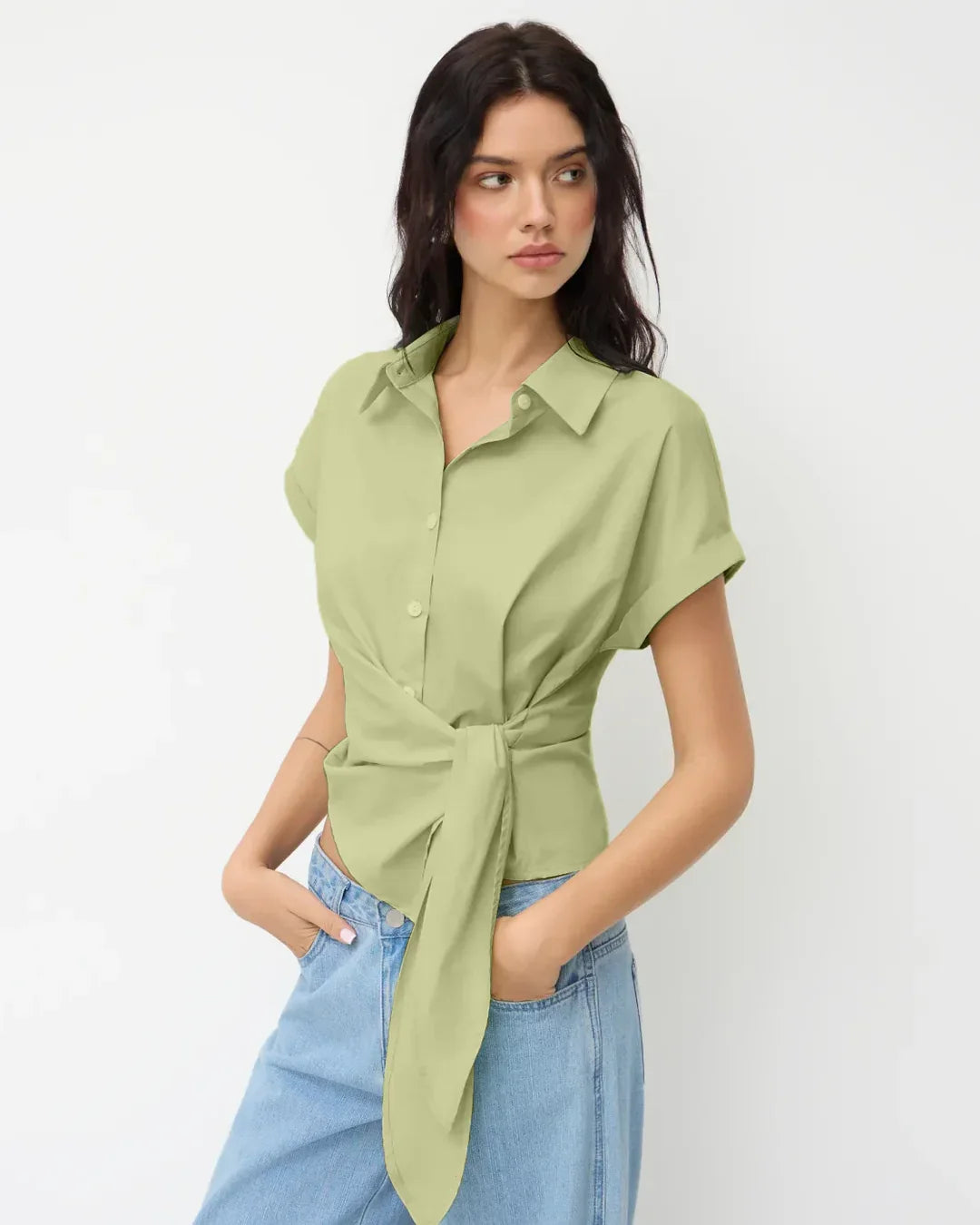 Asymmetrical Tie Waist Polo Shirt in Herbal