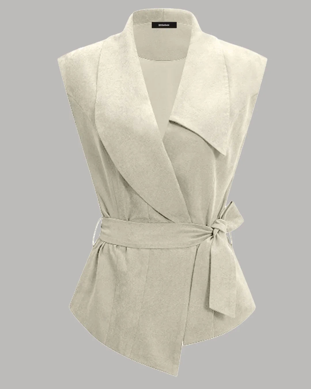 Beige Sleeveless Wrap Waistcoat Top with Belt