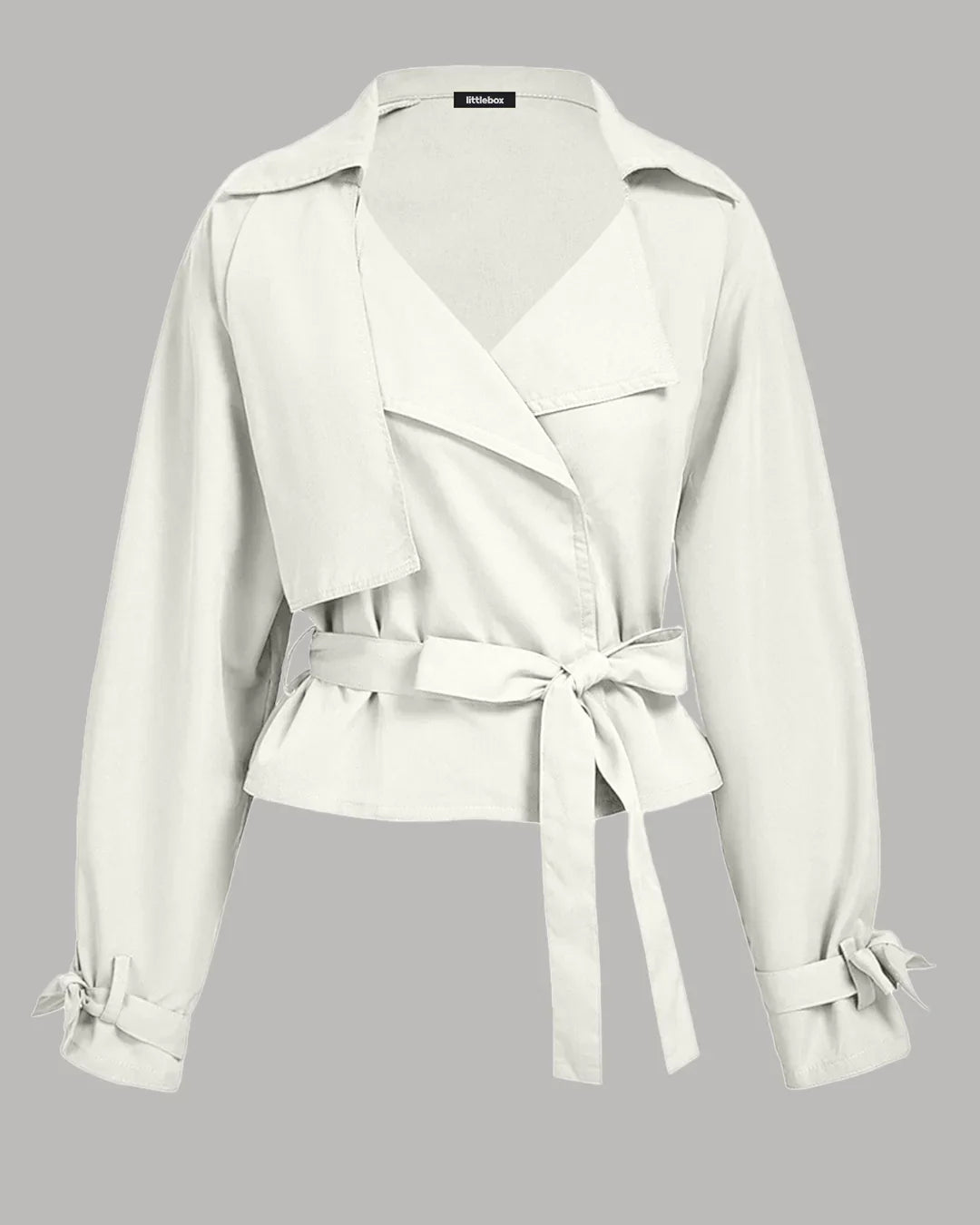 Belted Lapel Collar Cropped Waistcoat in Milky White