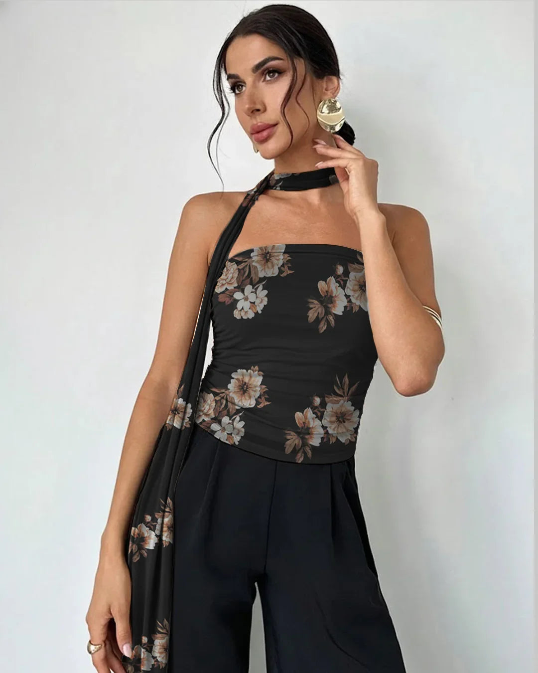 This Halter Tie Tube Top brings a sleek, feminine look with its floral print and soft mesh-like feel. The fitted shape sits close to the body, while the halter tie adds a chic touch that frames the neckline in a clean, modern way. The fabric blend keeps it light and easy, giving the top a smooth drape that works well for both chill days and dressed-up evenings. The floral pattern adds a subtle statement without being loud, making this Halter Tie Tube Top a cute and wearable pick for your wardrobe.