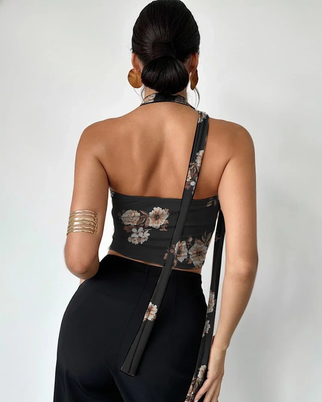 It is perfect for brunch plans, late-night outings, or any moment where you want something trendy but effortless. The stretch in the fabric makes it comfortable for all-day wear, and the halter tie adds just enough structure to keep the fit flattering. Style it with trousers, skirts, or denim and shift the vibe from soft to bold in seconds.