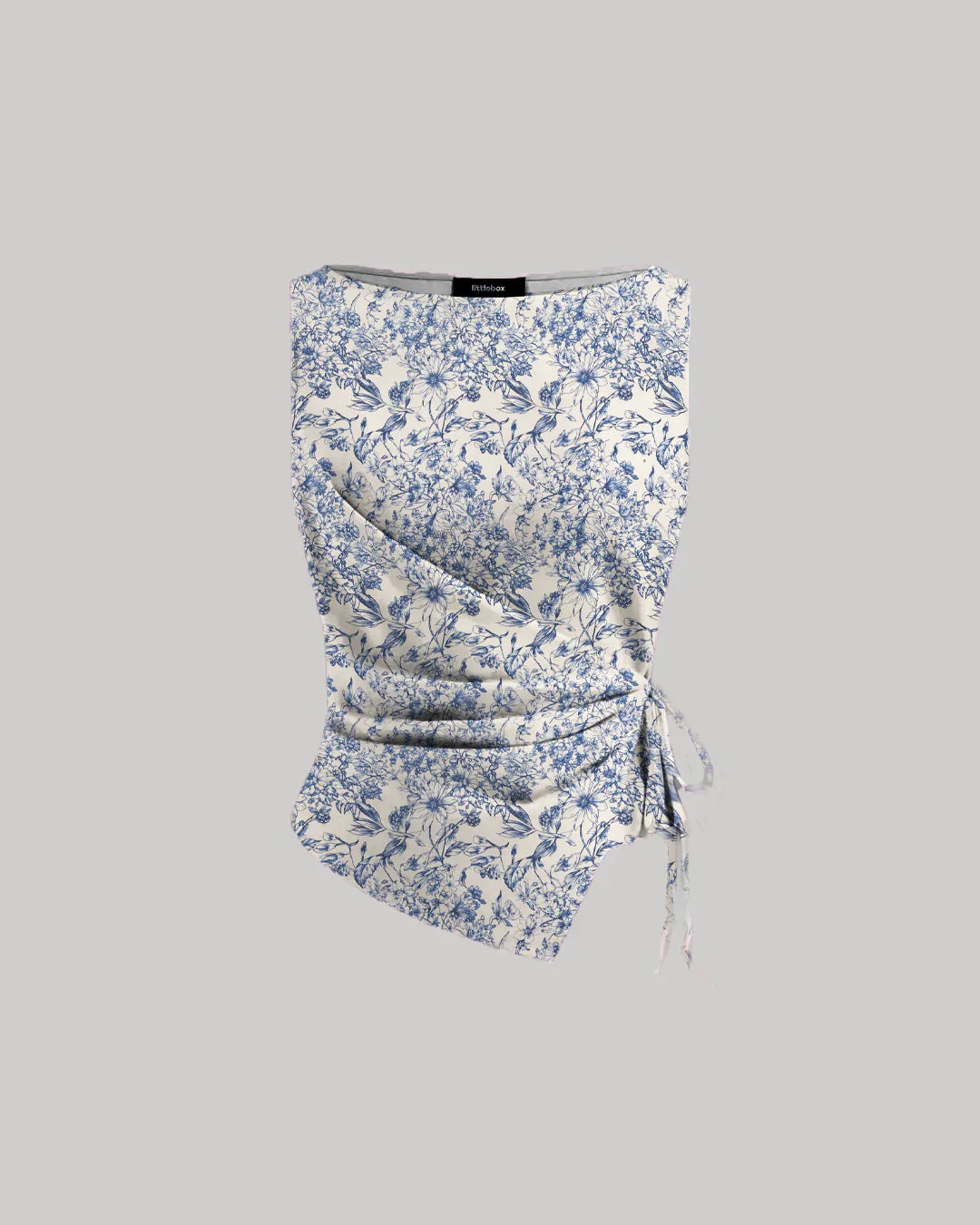 The Boat Neck Asymmetrical Hem Floral Sleeveless Top in Blue is where feminine charm meets modern edge. Designed with an asymmetric cut and ruched detailing, this piece adds subtle drama to your outfit. The adjustable tie detail lets you customise the fit, making it more than just another side tie top in your collection.