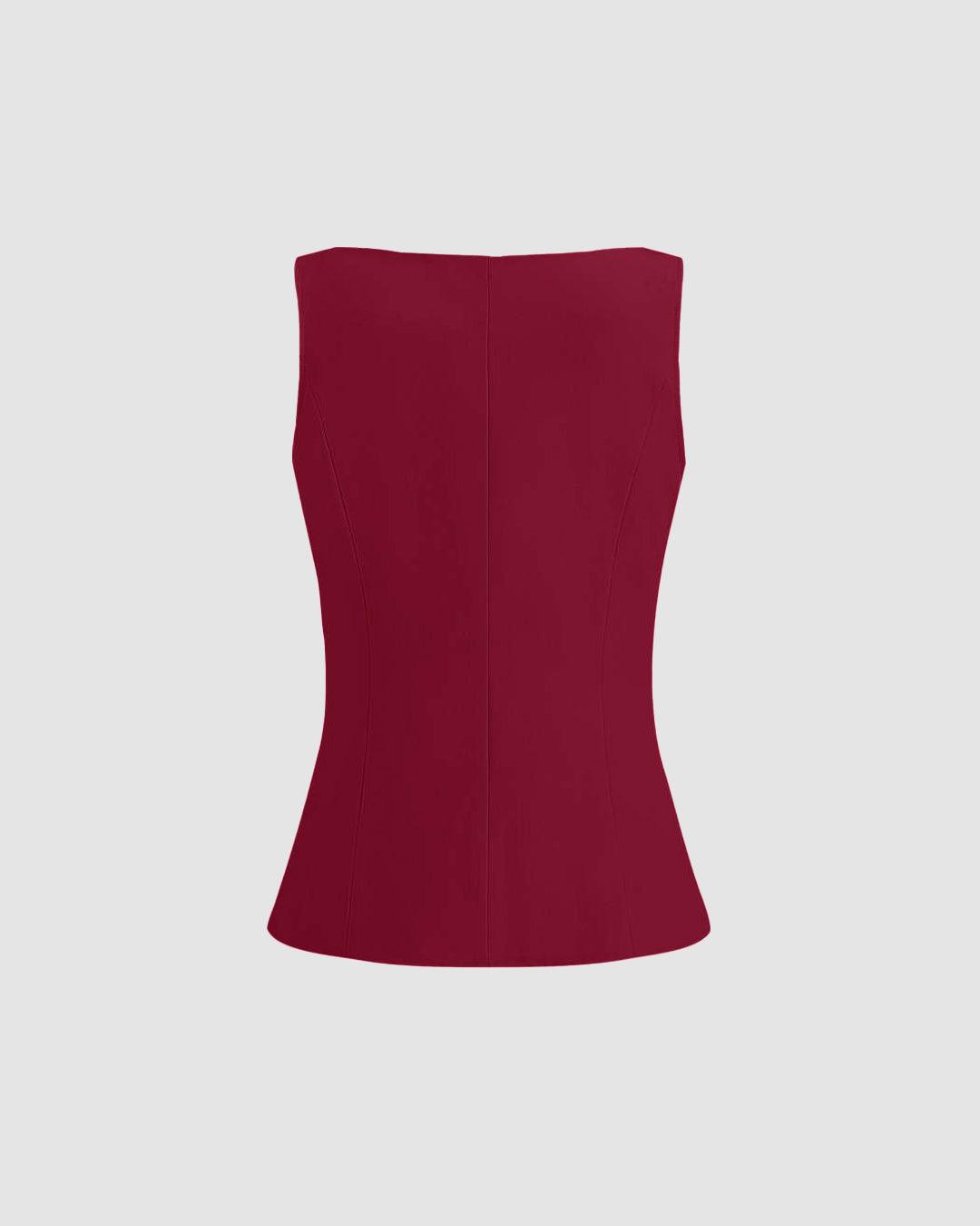 This red vest top brings a sharp yet stylish look with its clean tailoring and fitted silhouette. Designed with a round neckline and button-front detail, it adds a structured touch while keeping the style easy to wear. The subtle front slit gives movement and adds a modern edge. This red vest top feels bold, confident, and perfect for standout everyday outfits.