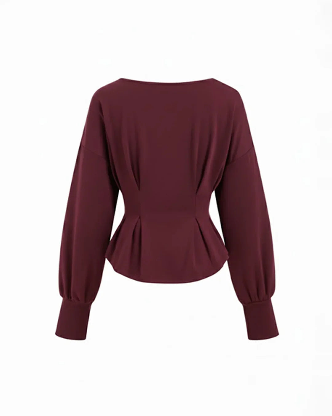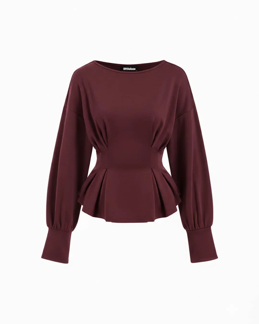 Boat Neck Ruched Peplum Sweatshirt in Maroon